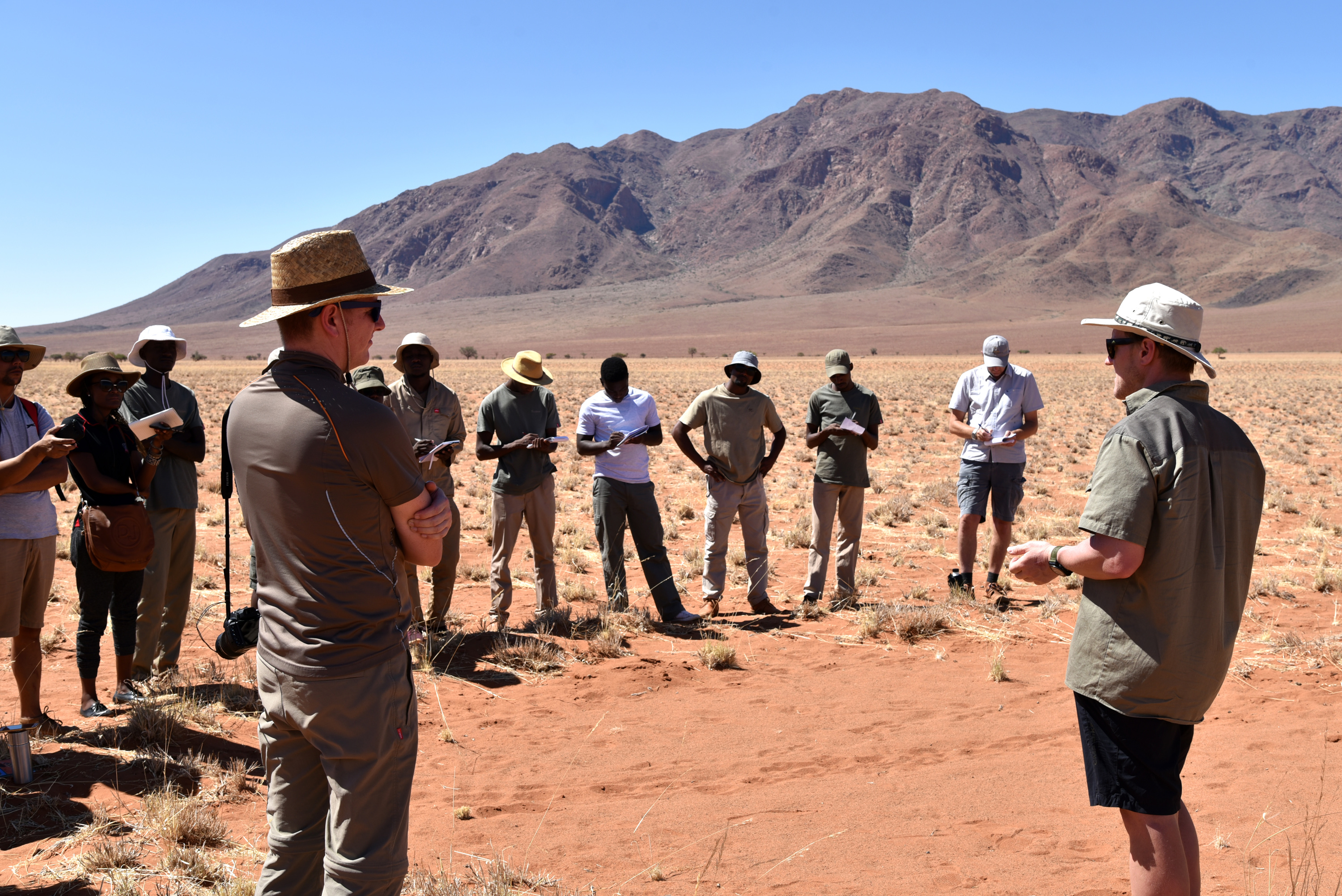 In addition to my work as a researcher, since 2019 I have also been committed to passing on specialist knowledge to Namibian tour guides. After all, the tour guides from the various companies and lodges are the ones who have the closest contact with national and international tourists. In November 2025, more than 20 tour guides gathered at Wolwedans in the NamibRand Nature Reserve to attend my full-day workshop “Fairy Circles and Plant Adaptations to Water Stress in the Namib”.
