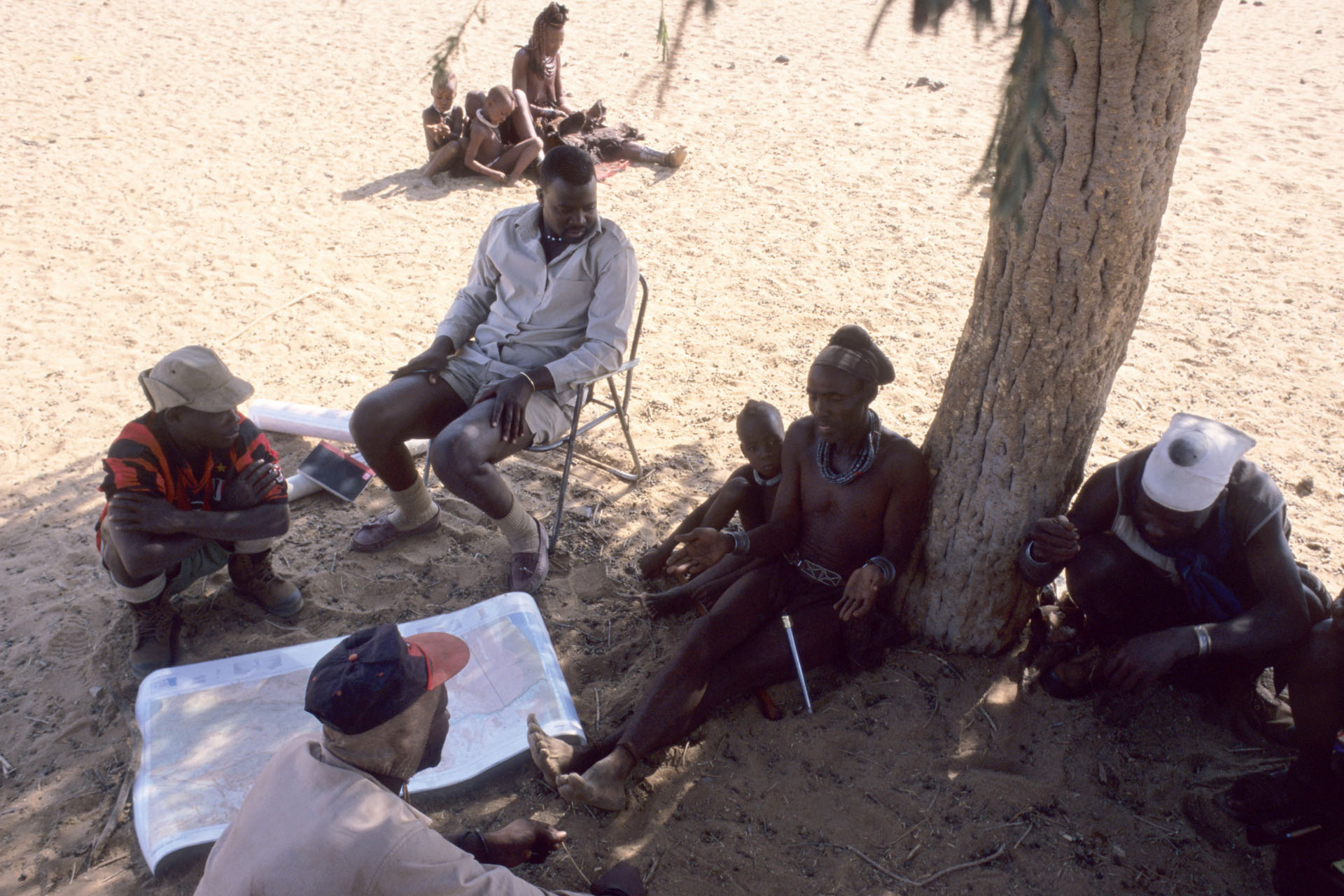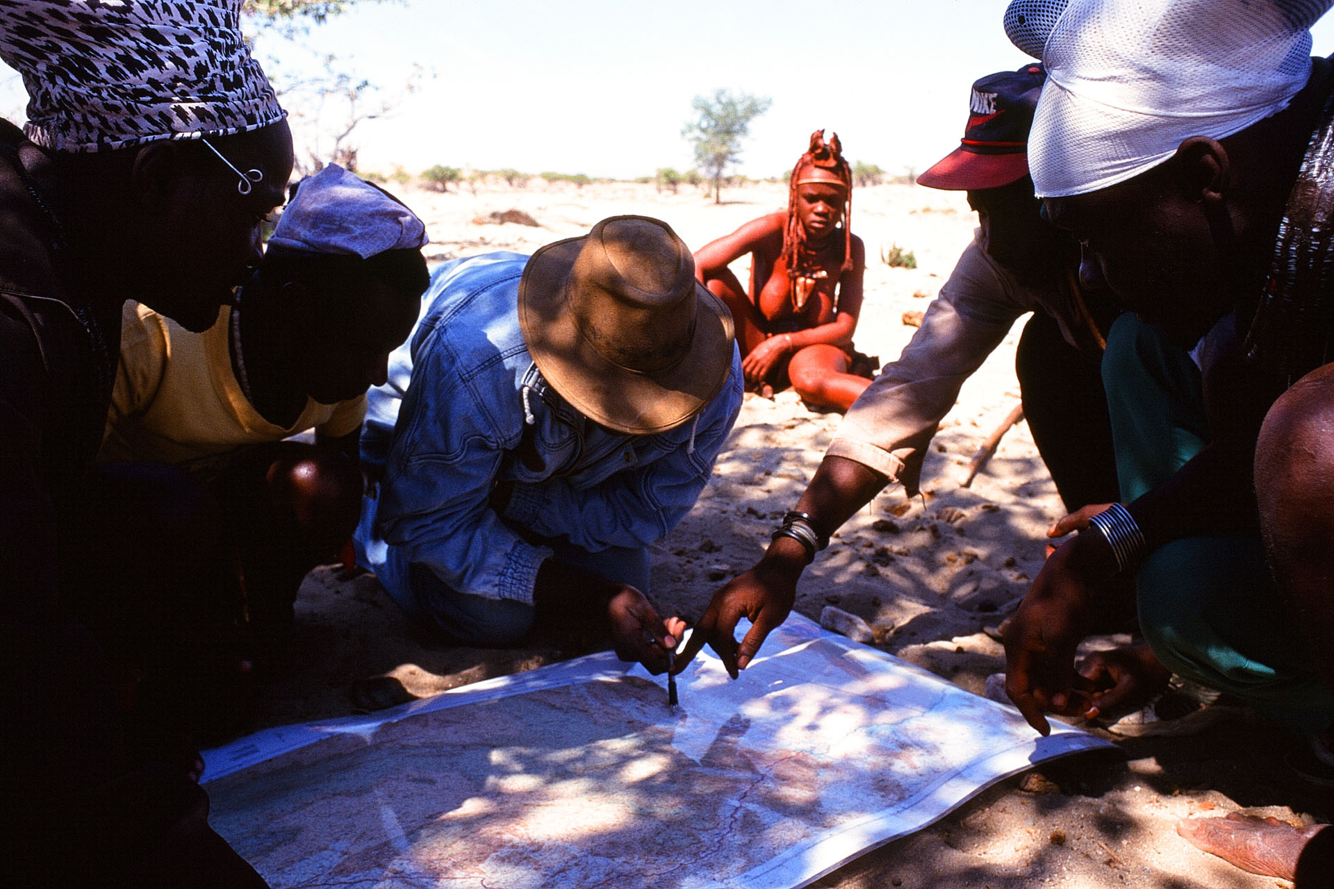 I accompanied John Kasaona – the current director of the project – on various tours to the Kaokoveld, where, for example, the border lines of the new conservancy in the Marienfluss or Hartmann’s Valley were negotiated with the local Himba chiefs. It was these tours within the framework of the IRDNC project in the remote north-west of Namibia that finally led me to the fairy circles in 1999.