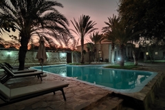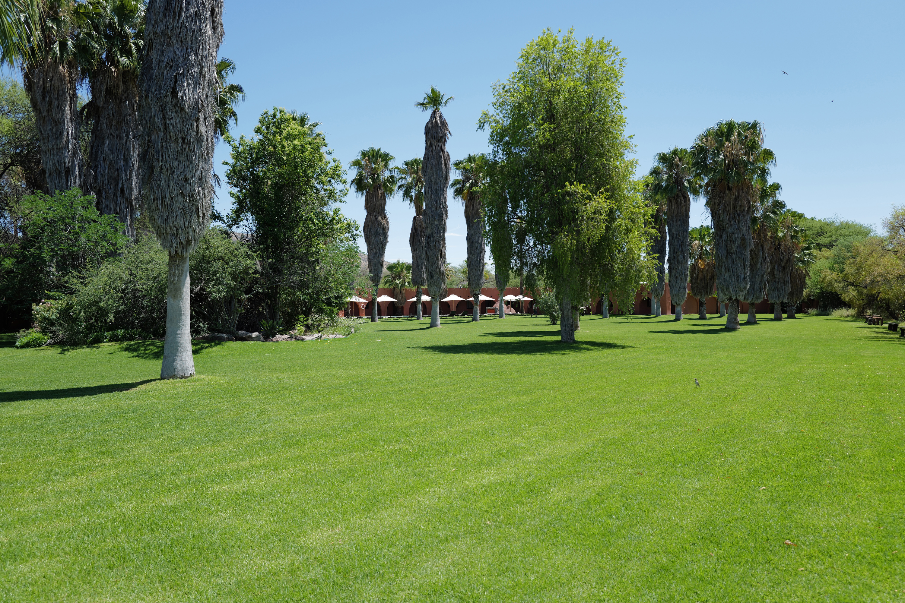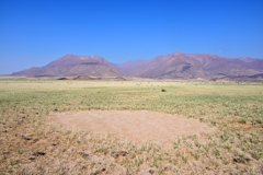 Nach dem Frühstück in Fort Sesfontein werden wir ausführlich die Feenkreise untersuchen. Dabei ist die Anfahrt in die Giribes-Ebene schon ein kleines Offroad-Abenteuer, denn hinter Sesfontein beginnen die typischen Wege des Kaokovelds. Hier kann man nur recht langsam fahren, weil es teils ruppig und schmal wird. Bei Erreichen der Giribes-Ebene werden wir bald die ersten Feenkreise sehen. Die Kreise dort sind besonders dicht beieinanderliegend und sie sind recht groß. Wir werden zuerst diese typischen Feenkreise der nördlichen Giribes ansehen, die ich seit dem Jahr 2000 untersuche. Dann werden wir zu riesig großen Feenkreisen, sogenannten Mega-Kreisen, die ich über Google Earth entdeckte. Diese sind über 20 m groß im Durchmesser. Anschließend geht es nach Süden, wo wir bald den Leopard-Felsen sehen werden. Man kann dort leicht hinaufgehen. Von oben hat man einen schönen Blick auf die Landschaft. Weiter geht es dann nach Westen in ein kleines Tal. Auch dort gibt es eine kleine Anhöhe, von der man besonders schöne Feenkreise sieht. Die Kreise dort sind nahezu perfekt rund. In diesem Tal trifft man auch hin und wieder Giraffen. Selbst einen Gepard habe ich dort in der Nähe schon entdeckt. Nun fahren wir wieder raus aus dem Tal und nach Süden. Dort befinden sich erneut sehr außergewöhnliche Feenkreise, die sich kettenförmig entlang von Abflusslinien erstrecken. Sie sind extrem oval und über 32 m lang. Zu all den ungewöhnlichen Feenkreisen publizierten wir 2019 einen Fachartikel , der die Besonderheiten der Kreise herausstellt. Abschließend fahren wir an das südlichste Ende der Giribes, wo die allererste Feenkreis-Studie vom Südafrikaner Karl Theron durchgeführt wurde. Er markierte Ende der 1970er Jahre Feenkreise, absterbende Euphorbien und andere Orte zwischen den Kreisen mit Metallstäben, um mögliche Veränderungen über einen langen Zeitraum zu verfolgen. Therons Hypothese war, dass die giftigen Euphorbien nach ihrem Absterben über einen langen Zeitraum Feenkreise verursachen könnten. Ich entdeckte diese Stäbe im Jahr 2020 zufällig wieder, denn es gab keine Anhaltspunkte oder GPS-Koordinaten, wo diese Stäbe sein könnten. Unsere erneuten Untersuchungen dieser Fläche zeigten eindeutig, dass Euphorbien nicht die Feenkreise verursachen, denn Gräser wuchsen genau dort, wo die Euphorbien abstarben. Außerdem waren die Euphorbien viel kleiner als die bis zu 19 m großen Feenkreise in der Fläche und auch die Muster der Euphorbien passten gar nicht zum Muster der Feenkreise. Auch zur Euphorbien-Theorie haben wir 2021 eine Publikation geschrieben. Damit wird die ganztägliche Exkursion in die Giribes beendet. An diesem Tag haben Sie ausreichend Möglichkeit, alles zu den Feenkreisen zu erfahren. Nun geht es wieder zurück zum Fort Sesfontein, wo wir den Abend gemütlich ausklingen lassen werden. Ein Sprung in den Pool ist bei der Wärme sehr zu empfehlen.