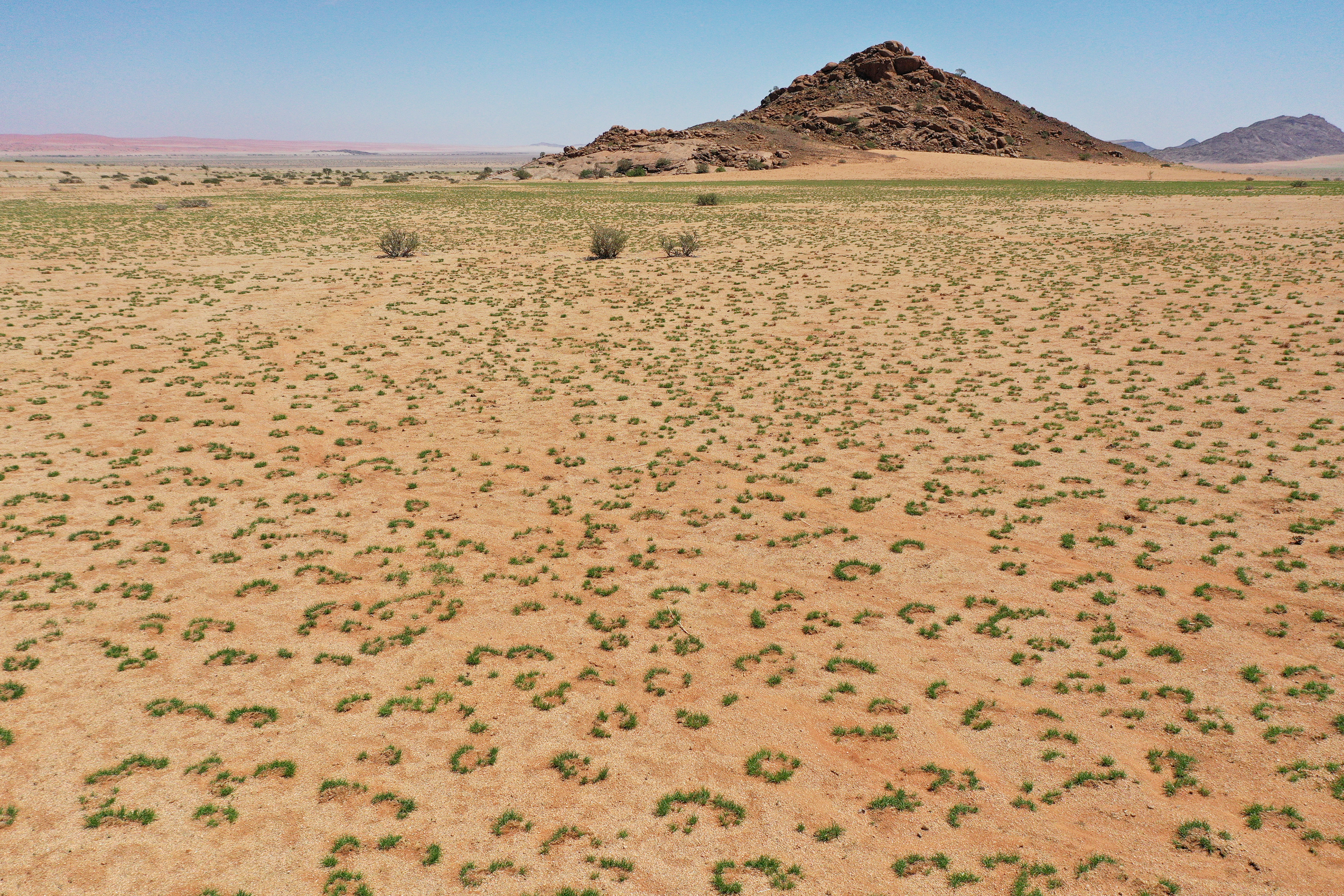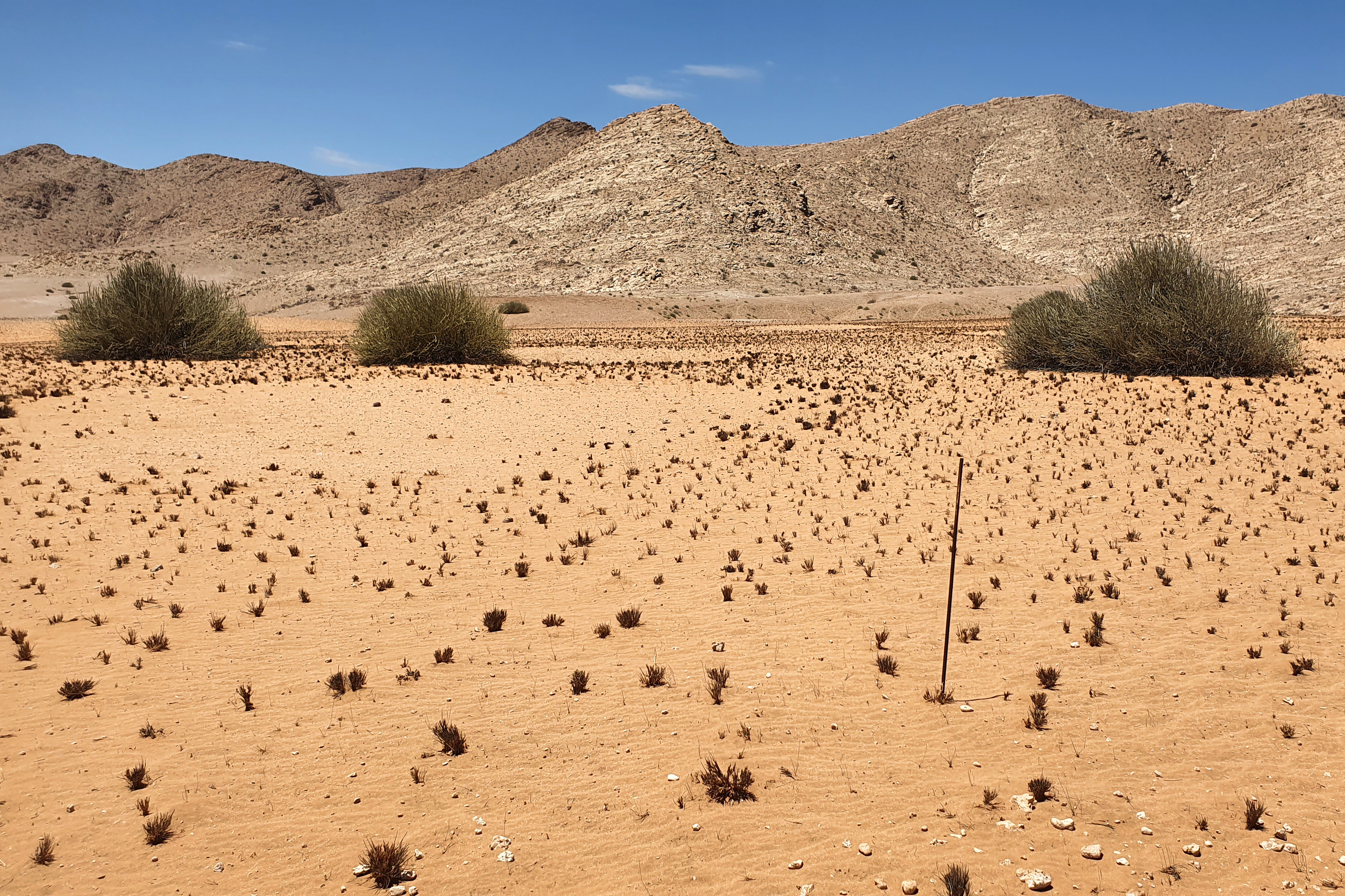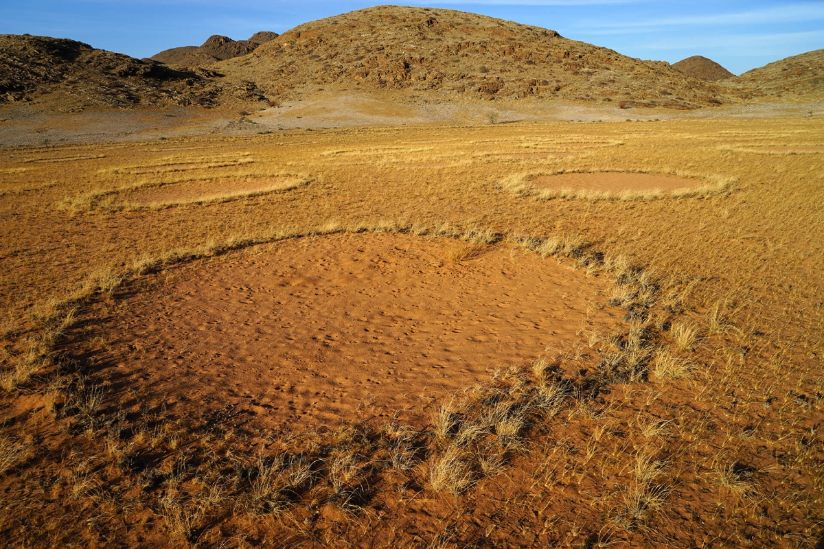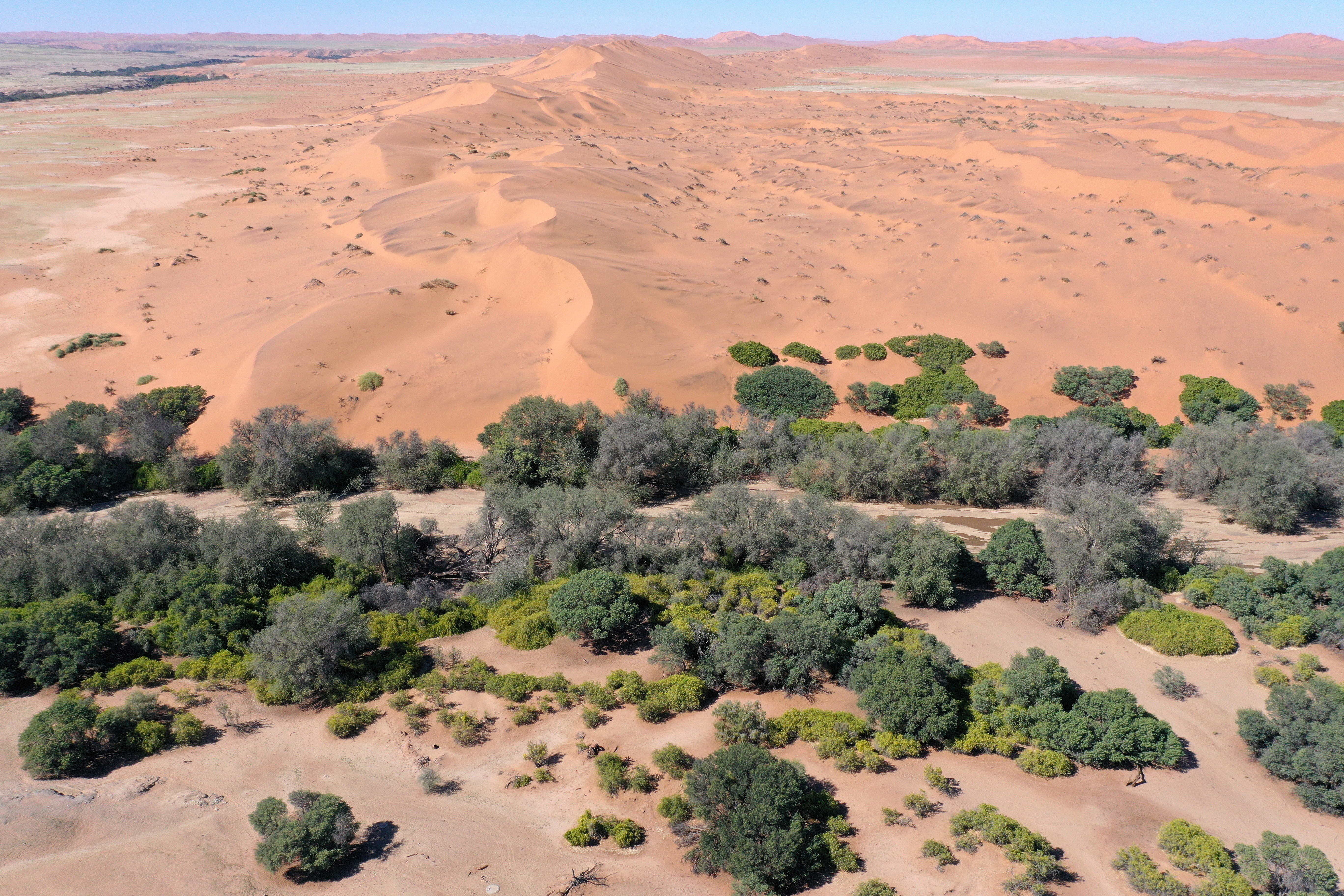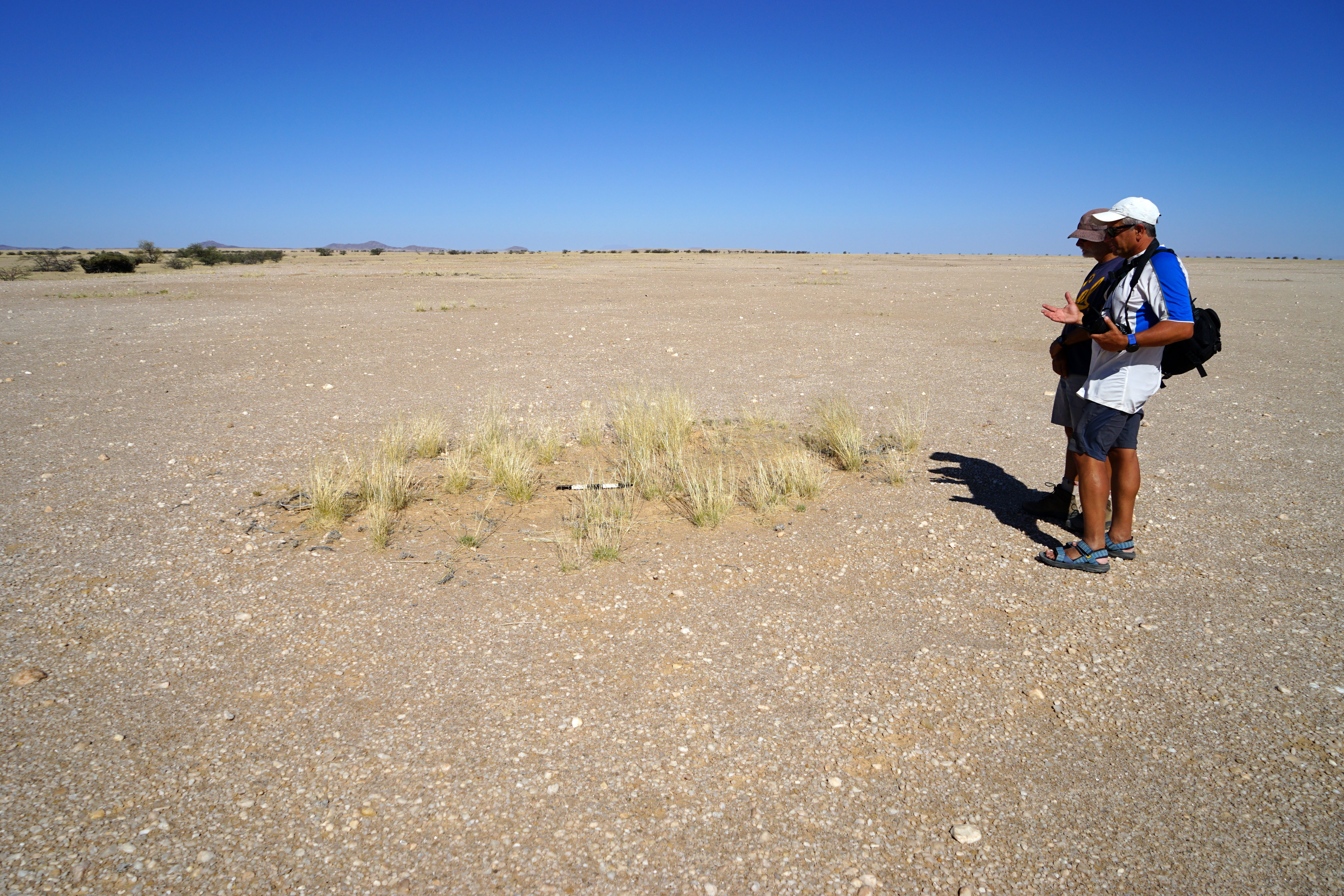 Das Gebiet am Eingang des Tsondab-Tals ist sehr trocken und der durchschnittliche jährliche Niederschlag beträgt weniger als 100 mm. Hier lassen sich die Pflanzen- und auch Tieranpassungen an Wassermangel gut beobachten. Schon morgens beim Frühstück werden Sie zahlreiche Vögel wie Siedelweber, Glanzstare, Trappen oder Felsentauben sehen, die sich alle um die nahe gelegene Wasserstelle sammeln. Auch Gnus und Oryx-Antilopen lassen sich gerne an den Wasserlöchern blicken. Auf einer Fahrt durch die Umgebung werden wir besondere Pflanzenringe der Grasart Eragrostis nindensis sehen, die ich dort über mehrere Jahre vermessen habe. Dieses Gras wird auch als „Acht-Tage-Gras“ bezeichnet, weil es gut eine Woche nach dem Regen stark ergrünt. Das Gras bildet nur Ringe, wenn großer Wassermangel vorherrscht, denn wo es feuchter ist, wie im Landesinneren, dort bildet es geschlossene Grashorste. Diese Grasringe gehören zu mehr als einem Dutzend Pflanzenarten, die allesamt Ringe in der Namib bilden. Wir haben diese Pflanzenringe erstmalig 2020 kartiert. Die Ringe wurden trotz ihrer großen Vielfalt noch nie beschrieben. Ich habe deshalb diese Pflanzenringe der Namib in einem mehrjährigen Forschungsprojekt speziell untersucht. Die Forschungsergebnisse zu den auf der Namib Naukluft Lodge und in 40 weiteren Gebieten untersuchten Grasringen sind seit Dezember 2025 als Publikation mit dem Titel Ring-formation in a Namibian resurrection grass and its relation to climate, neighborhood competition and soil microbes online verfügbar. Auf unserer Forscher-Tour können wir uns die Ringe genauer ansehen, denn häufig sind in der Wüste auch kleine unscheinbare Anpassungen besonders interessant. Am Nachmittag können wir dann nach Westen fahren, wo wir auch Feenkreise sehen werden. Diese Feenkreise dort sind ebenso wie die kleineren Pflanzenringe kreisrund, denn die Gräser saugen das innere Bodenwasser heraus. Hierzu habe ich auch Messungen vor Ort gemacht. Die kreisrunde Form ist eine spezielle Anpassung der Gräser an Wassermangel, der in dieser region der Namib permamenent vorherrscht. Danach geht es weiter zu einem „Wald“ aus Moringa-Bäumen. Solch große Ansammlungen von Moringa-Bäumen sind in Namibia etwas sehr Besonderes. Diesen Moringa-Wald habe ich mit Drohnen kartiert, um herauszufinden, inwieweit die Bäume von den Linien der umgebenden Trockenflüsse abhängig sind. Wenn es mal in der Wüste regnet, dann können kleine Senken lebenswichtiges Wasser ansammeln und damit die Verteilung der Vegetation stark beeinflussen. Manche Baumarten sind deshalb stärker vom Flussbett abhängig, manche weniger, weil sie zum Beispiel besonders tiefe Wurzeln haben oder weil sie viel Wasser im dicken Stamm speichern können, so wie es die Moringa-Bäume tun. Nachdem wir diesen Wald angeschaut haben, können wir den Tag mit einem besonders schönen Sonnenuntergang ausklingen lassen. Krönender Abschluss des Tages ist dann wieder das Dinner unter freiem Sternenhimmel.
