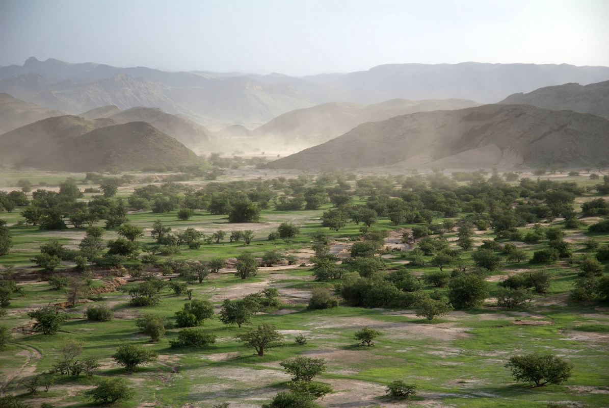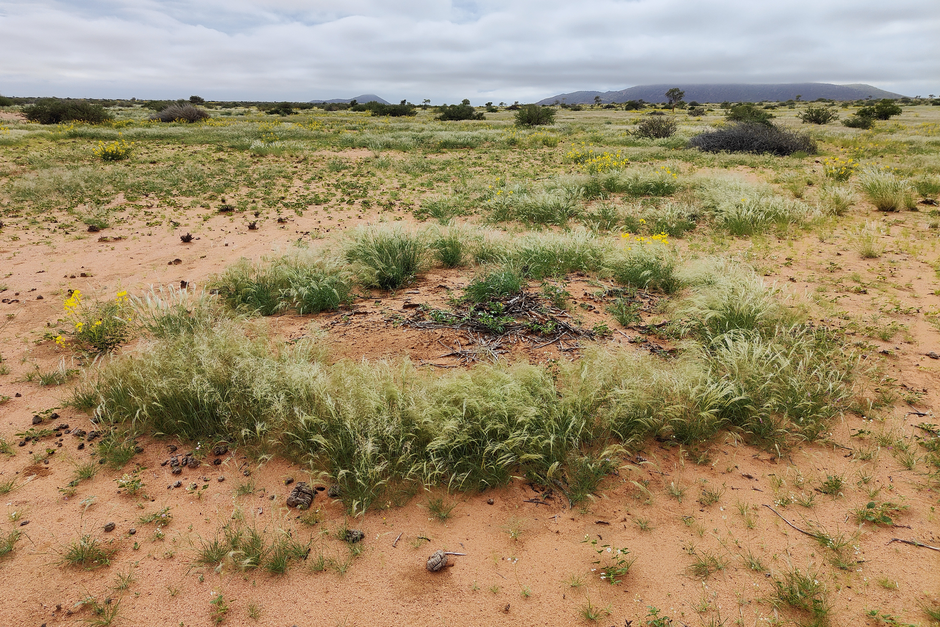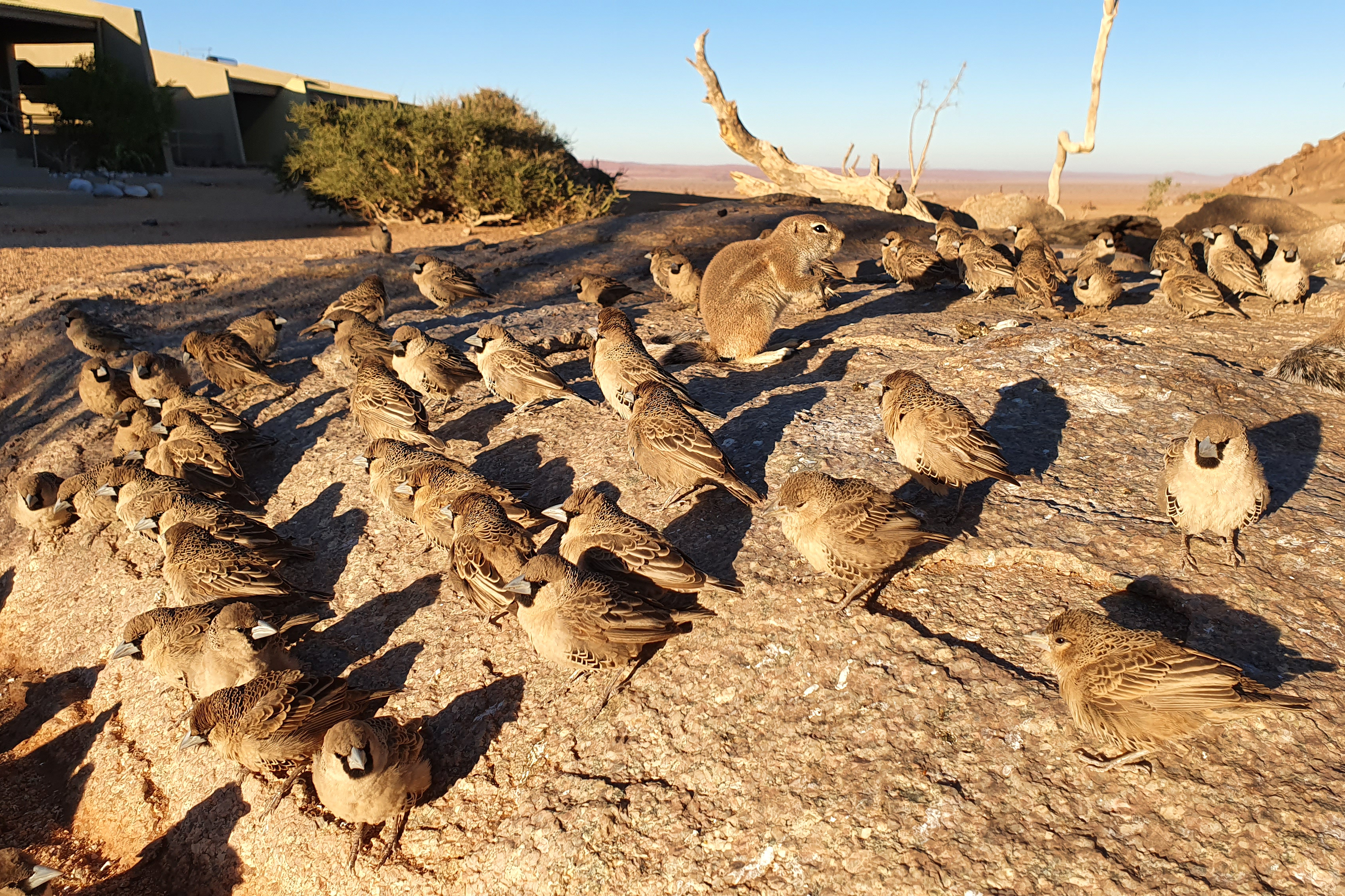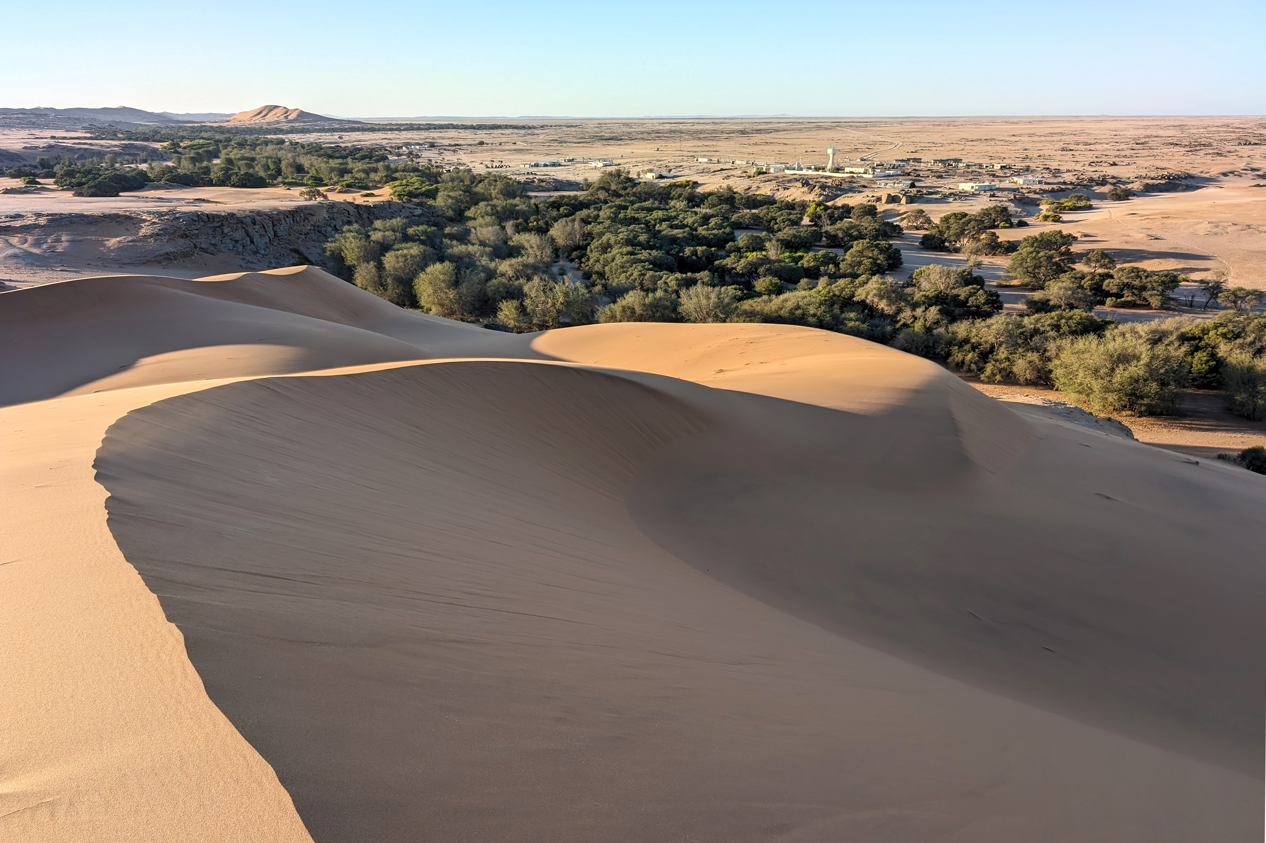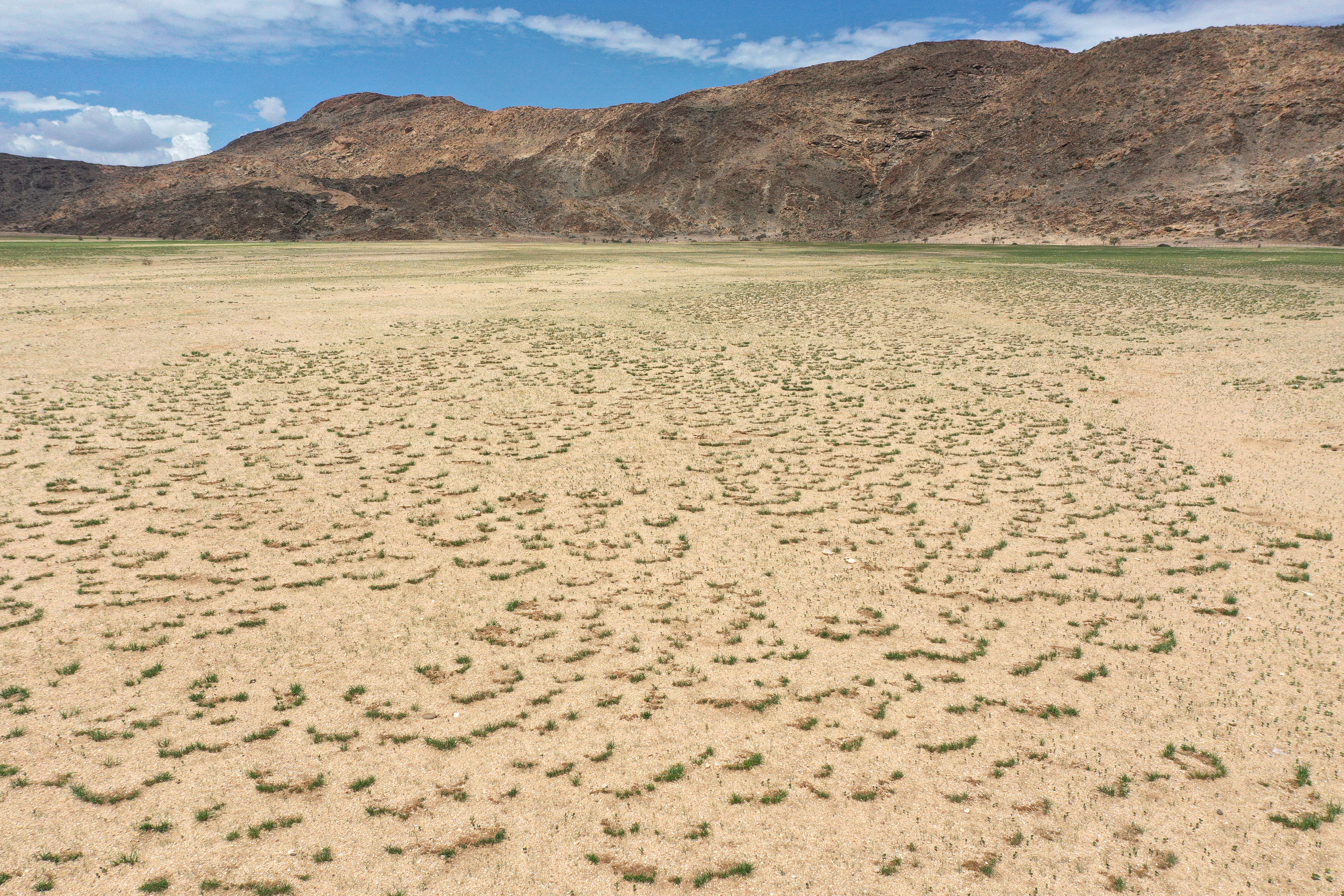 Das Gebiet am Eingang des Tsondab-Tals ist sehr trocken und der durchschnittliche jährliche Niederschlag beträgt weniger als 100 mm. Hier lassen sich die Pflanzen- und auch Tieranpassungen an Wassermangel gut beobachten. Schon morgens beim Frühstück werden Sie zahlreiche Vögel wie Siedelweber, Glanzstare, Trappen oder Felsentauben sehen, die sich alle um die nahe gelegene Wasserstelle sammeln. Auch Gnus und Oryx-Antilopen lassen sich gerne an den Wasserlöchern blicken. Auf einer Fahrt durch die Umgebung werden wir besondere Pflanzenringe der Grasart Eragrostis nindensis sehen, die ich dort über mehrere Jahre vermessen habe. Dieses Gras wird auch als „Acht-Tage-Gras“ bezeichnet, weil es gut eine Woche nach dem Regen stark ergrünt. Das Gras bildet nur Ringe, wenn großer Wassermangel vorherrscht, denn wo es feuchter ist, wie im Landesinneren, dort bildet es geschlossene Grashorste. Diese Grasringe gehören zu mehr als einem Dutzend Pflanzenarten, die allesamt Ringe in der Namib bilden. Wir haben diese Pflanzenringe erstmalig 2020 kartiert. Die Ringe wurden trotz ihrer großen Vielfalt noch nie beschrieben. Ich habe deshalb diese Pflanzenringe der Namib in einem mehrjährigen Forschungsprojekt speziell untersucht. Die Forschungsergebnisse zu den auf der Namib Naukluft Lodge und in 40 weiteren Gebieten untersuchten Grasringen sind seit Dezember 2025 als Publikation mit dem Titel Ring-formation in a Namibian resurrection grass and its relation to climate, neighborhood competition and soil microbes online verfügbar. Auf unserer Forscher-Tour können wir uns die Ringe genauer ansehen, denn häufig sind in der Wüste auch kleine unscheinbare Anpassungen besonders interessant. Am Nachmittag können wir dann nach Westen fahren, wo wir auch Feenkreise sehen werden. Diese Feenkreise dort sind ebenso wie die kleineren Pflanzenringe kreisrund, denn die Gräser saugen das innere Bodenwasser heraus. Hierzu habe ich auch Messungen vor Ort gemacht. Die kreisrunde Form ist eine spezielle Anpassung der Gräser an Wassermangel, der in dieser region der Namib permamenent vorherrscht. Danach geht es weiter zu einem „Wald“ aus Moringa-Bäumen. Solch große Ansammlungen von Moringa-Bäumen sind in Namibia etwas sehr Besonderes. Diesen Moringa-Wald habe ich mit Drohnen kartiert, um herauszufinden, inwieweit die Bäume von den Linien der umgebenden Trockenflüsse abhängig sind. Wenn es mal in der Wüste regnet, dann können kleine Senken lebenswichtiges Wasser ansammeln und damit die Verteilung der Vegetation stark beeinflussen. Manche Baumarten sind deshalb stärker vom Flussbett abhängig, manche weniger, weil sie zum Beispiel besonders tiefe Wurzeln haben oder weil sie viel Wasser im dicken Stamm speichern können, so wie es die Moringa-Bäume tun. Nachdem wir diesen Wald angeschaut haben, können wir den Tag mit einem besonders schönen Sonnenuntergang ausklingen lassen. Krönender Abschluss des Tages ist dann wieder das Dinner unter freiem Sternenhimmel.