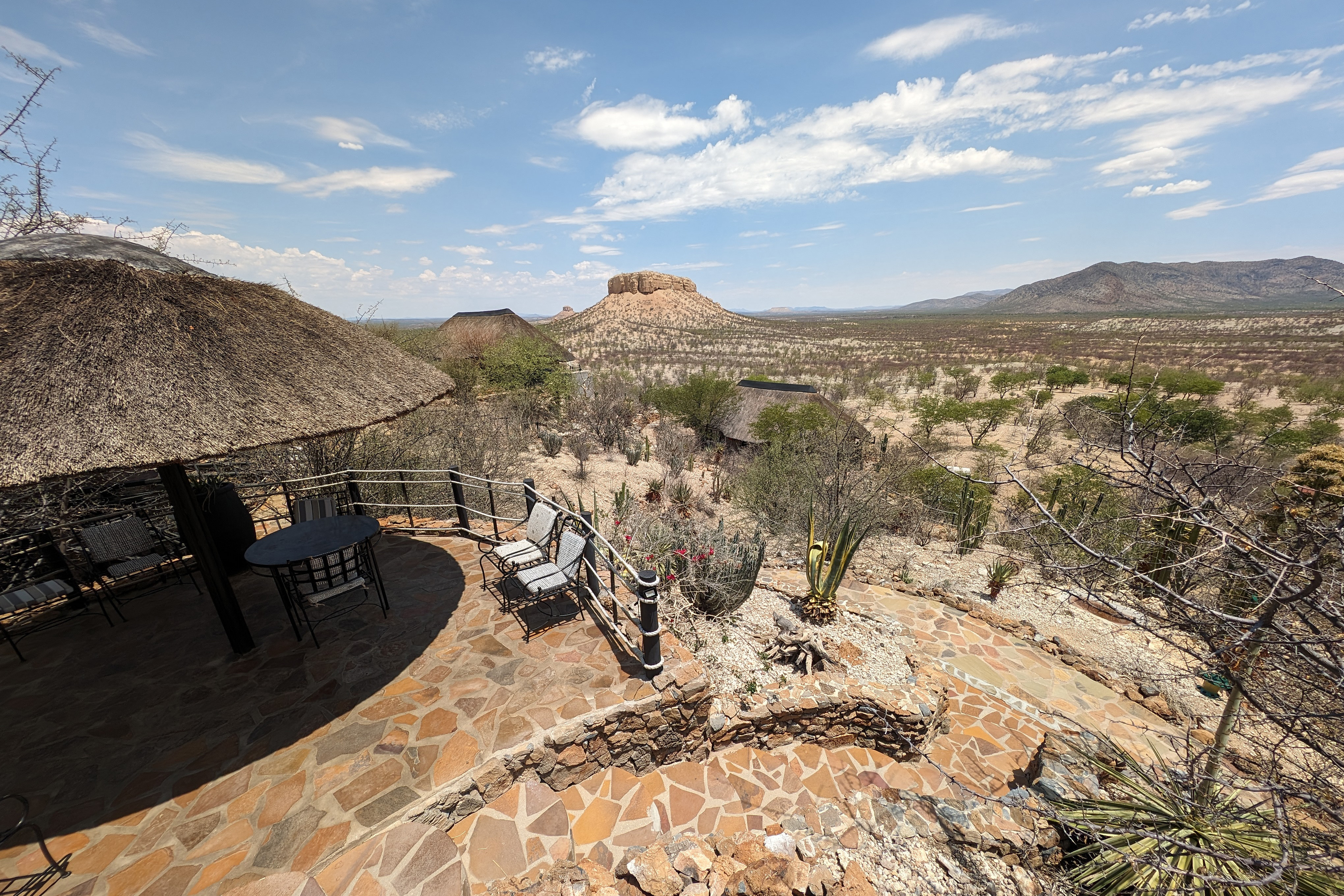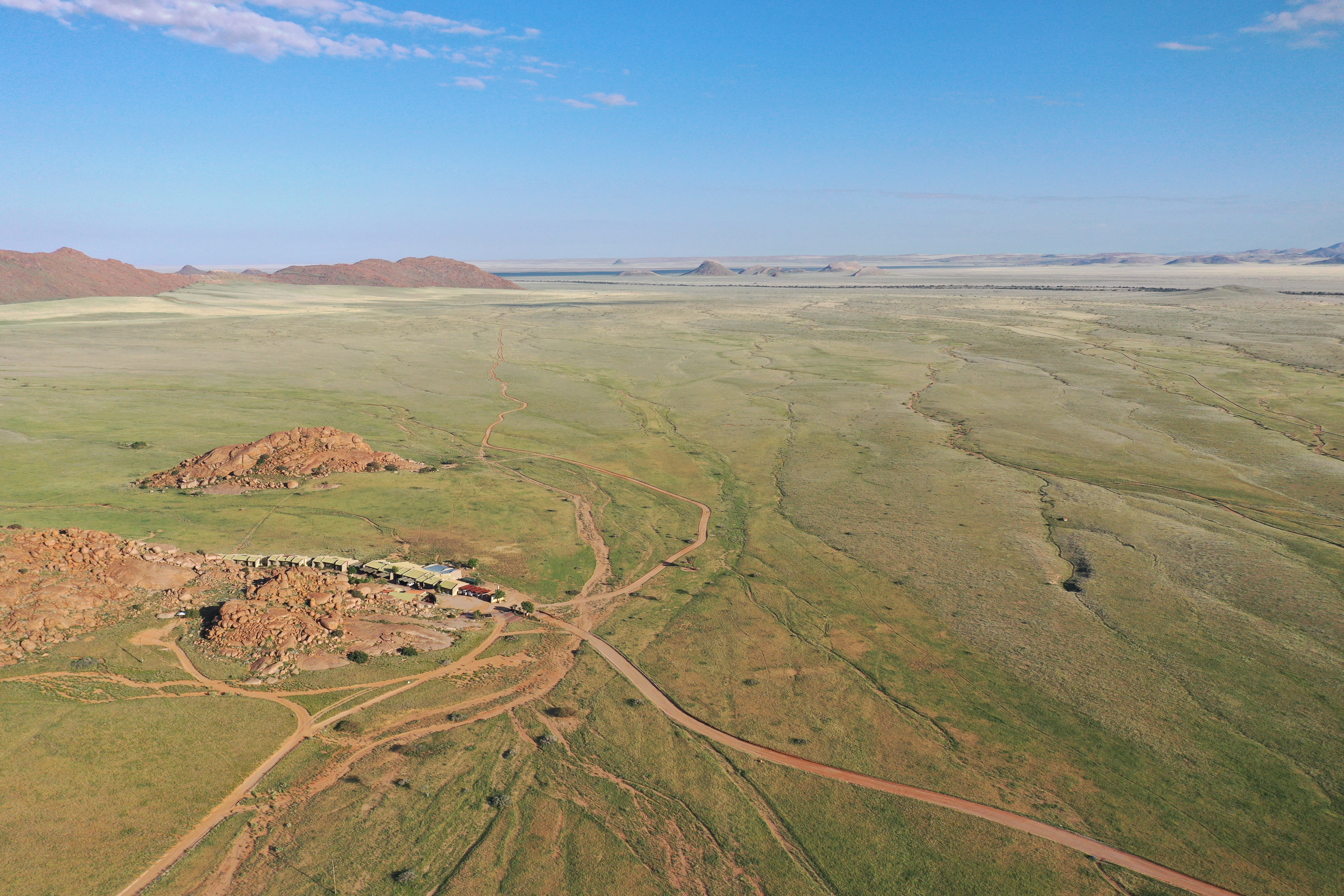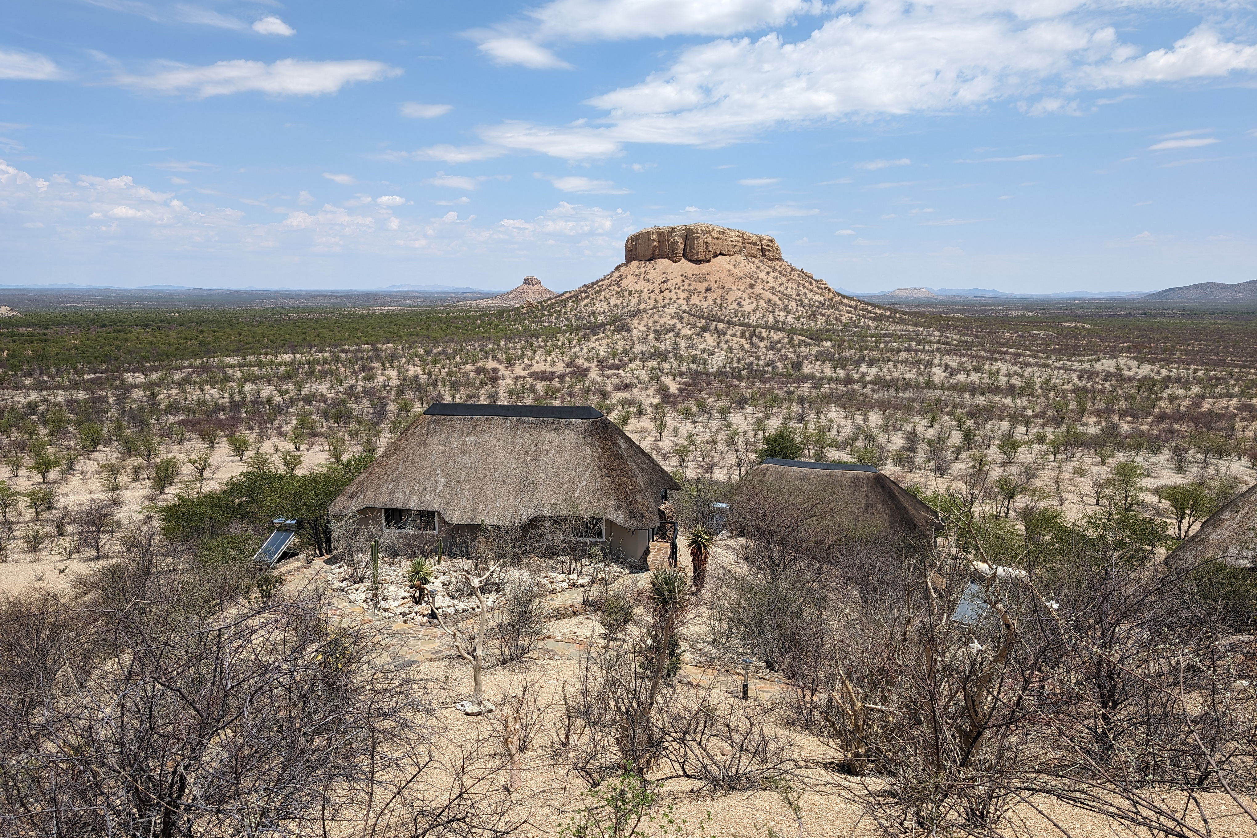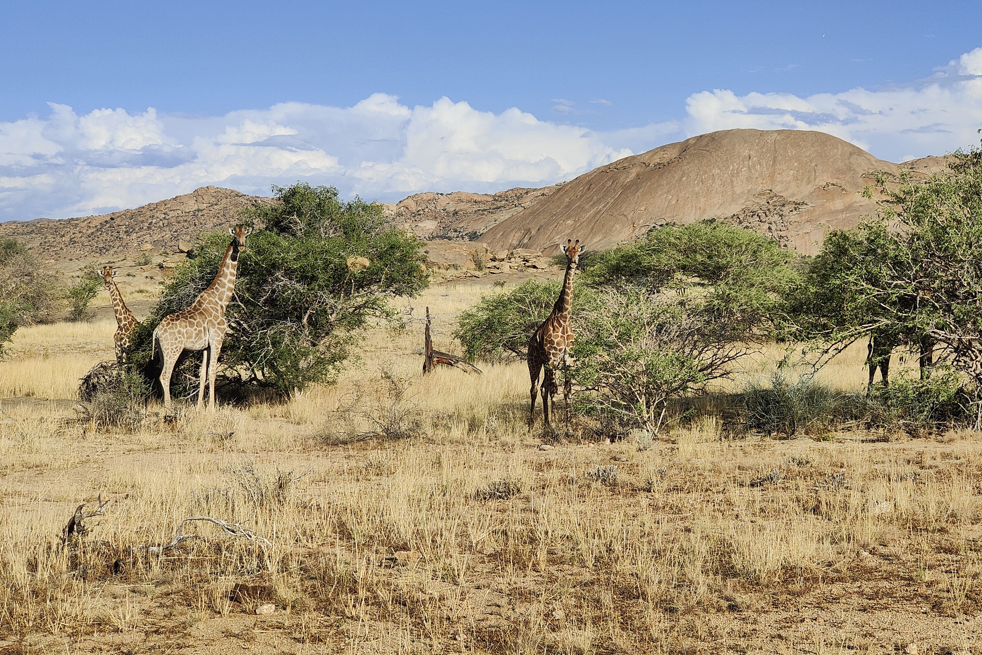 Sollten sich Wüstenelefanten in der Nähe der Lodge befinden, so können wir nach dem Frühstück eine Pirschfahrt im offenen Safari-Truck durchführen. Hierbei lernt man die Elefanten im Ugab-Fluss aus nächster Nähe kennen. Wüstenelefanten sind keine eigene Unterart, jedoch haben sie im Vergleich zu Savannenelefanten körperliche Anpassungen, die ihnen das Überleben im Trockengebiet leichter machen. So sind ihre Füße etwas breiter, damit sie besser Wanderungen durch tiefen Sand unternehmen können. Wüstenelefanten müssen häufig sehr weite Strecken von bis zu 70 km zurücklegen, um von einem Trockenfluss zum nächsten zu gelangen. Die Trockenflüsse mit ihrem dichten, ganzjährig grünen Baum- und Strauchbewuchs bilden nämlich die Hauptnahrungsquelle für die Elefanten im Nordwesten Namibias. Sollten die Elefanten nicht da sein, so können wir auf einer Wanderung die Felszeichnungen des Brandbergs wie die „Weiße Dame“ besuchen. Als Teil der Forscher-Tour werde ich Ihnen am Brandberg die dortigen Feenkreise und Euphorbien-Büsche etwas näher vorstellen. Ich habe dort mehrere Untersuchungsflächen, die ich seit 2020 regelmäßig mit Drohnen kartiere. Bezüglich der Feenkreise ist der Brandberg eine besondere Region, denn viele der Kreise entstehen da, wo auch die giftige Euphorbia damarana vorkommt. Forscher aus Südafrika habe deshalb vermutet, dass die Euphorbien durch ihr Absterben Feenkreise verursachen könnten, indem sie das Gras um sie herum abtöten. Wir haben diese Entstehungstheorie mit einer umfassenden Studie genau unter die Lupe genommen und konnten zeigen, dass die Euphorbien nicht die Gräser vergiften, geschweige denn, dass sie Feenkreise auf diese Weise verursachen würden. Nach den Feenkreisen verlassen wir den Brandberg. Ab dem Ugab in Richtung Norden kann man nun vermehrt die für das Damaraland so typischen Wildtiere wie Zebras, Springböcke, Giraffen, Kudus und mit ganz viel Glück sogar ein Spitzmaulnashorn sehen. Im Damaraland nördlich vom Ugab beginnt nämlich das riesige Gebiet, wo das kommunale Naturschutzprojekt IRDNC in den letzten Jahrzehnten so erfolgreich gearbeitet hat. Es war auch hier im Damaraland, dass mit der Gründung des Save The Rhino Trust (SRT) Anfang der 1980er Jahre maßgeblich zum Schutz des Spitzmaulnashorns beigetragen wurde. So befindet sich nach wie vor eine wichtige Feldstation von SRT am Ugab auf der Westseite des Brandbergs, von wo aus regelmäßige Patrouillen zum Schutz der Nashörner durchgeführt werden. Am späten Nachmittag werden wir dann im Gebiet um Twyfelfontein ankommen, was durch seine bizarre Landschaft von vielen kleinen Granit-Inselbergen gekennzeichnet ist. Sie werden in der sehr komfortablen Twyfelfontein Country Lodge übernachten. Die Lodge ist wunderschön in die Berglandschaft von Twyfelfontein integriert und bietet beste Erholung.