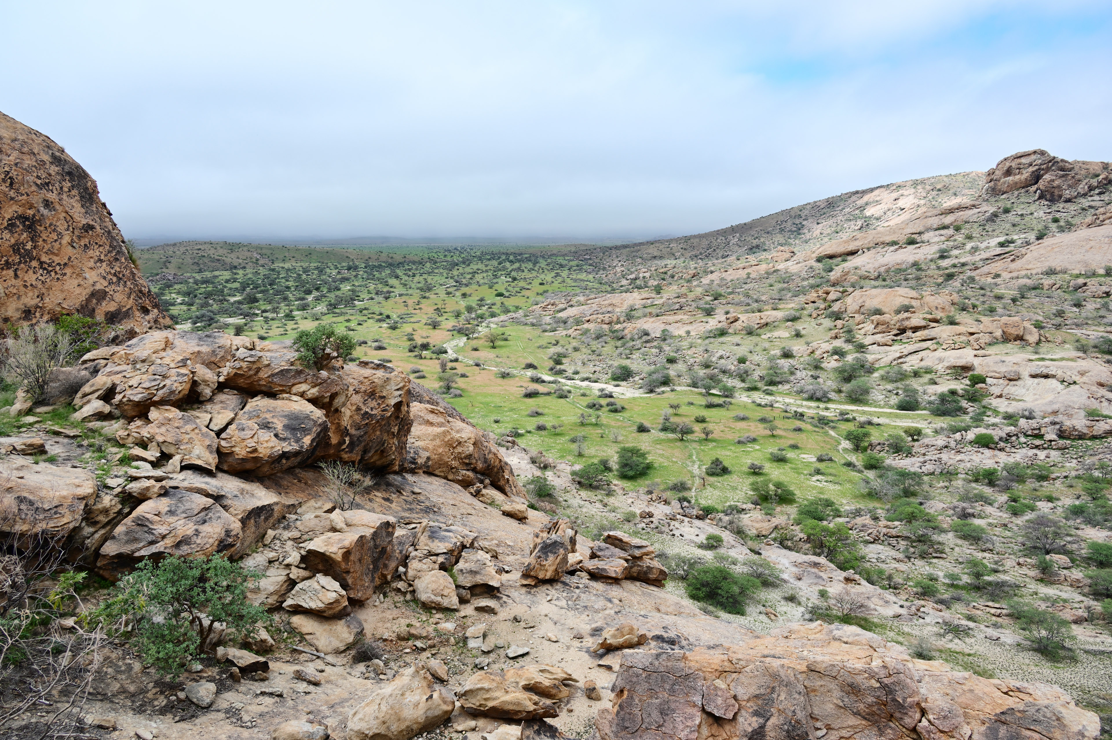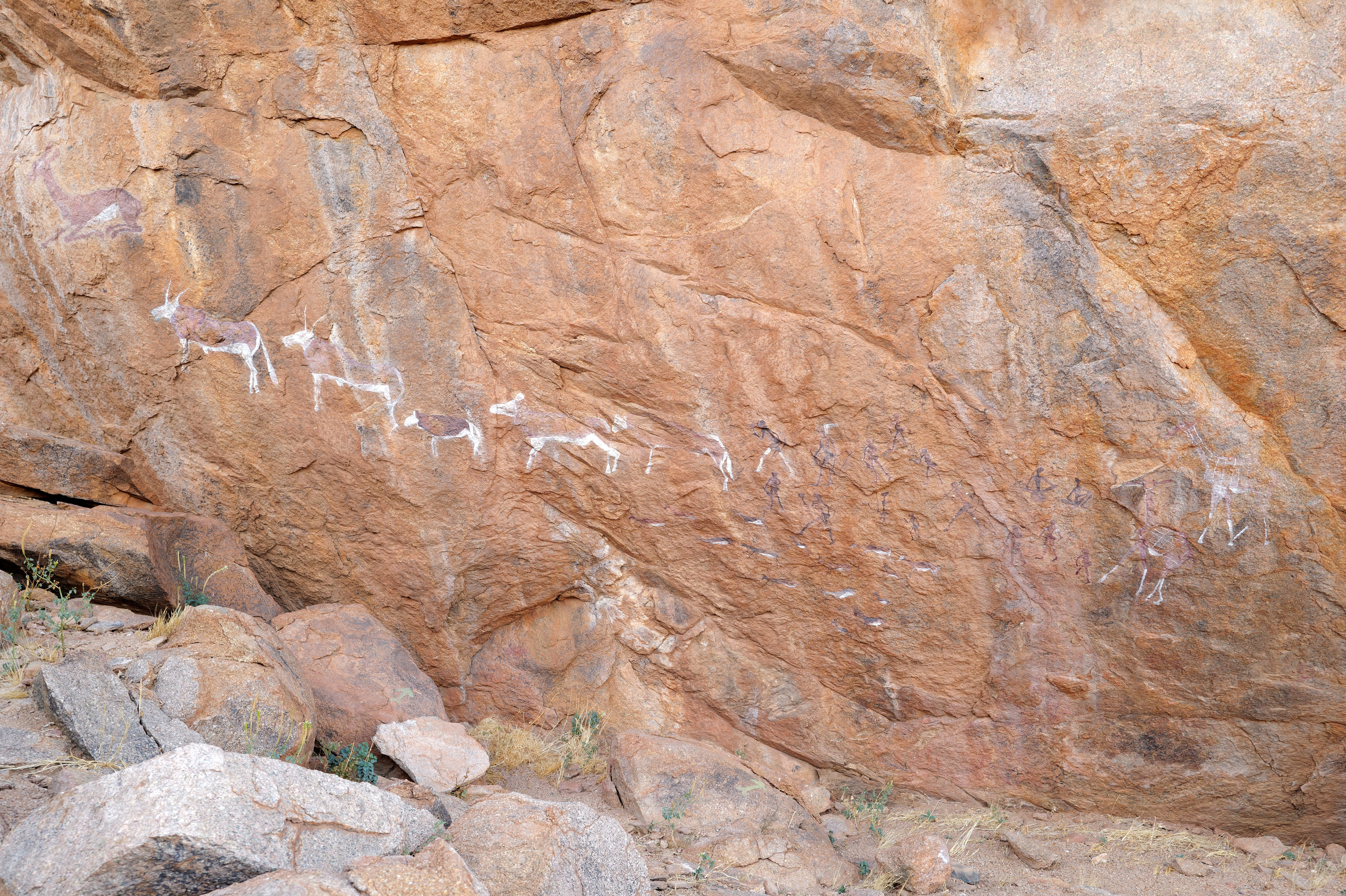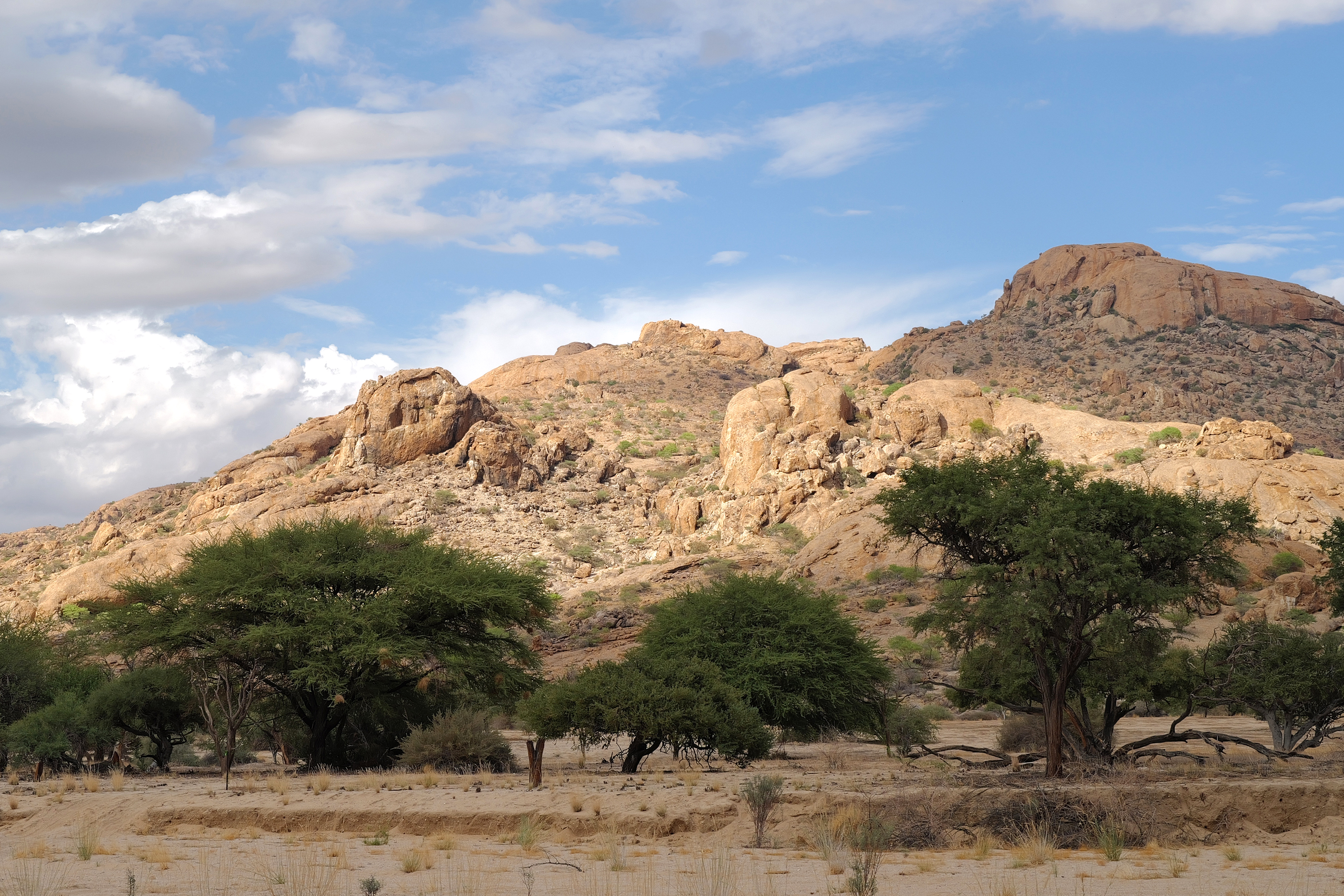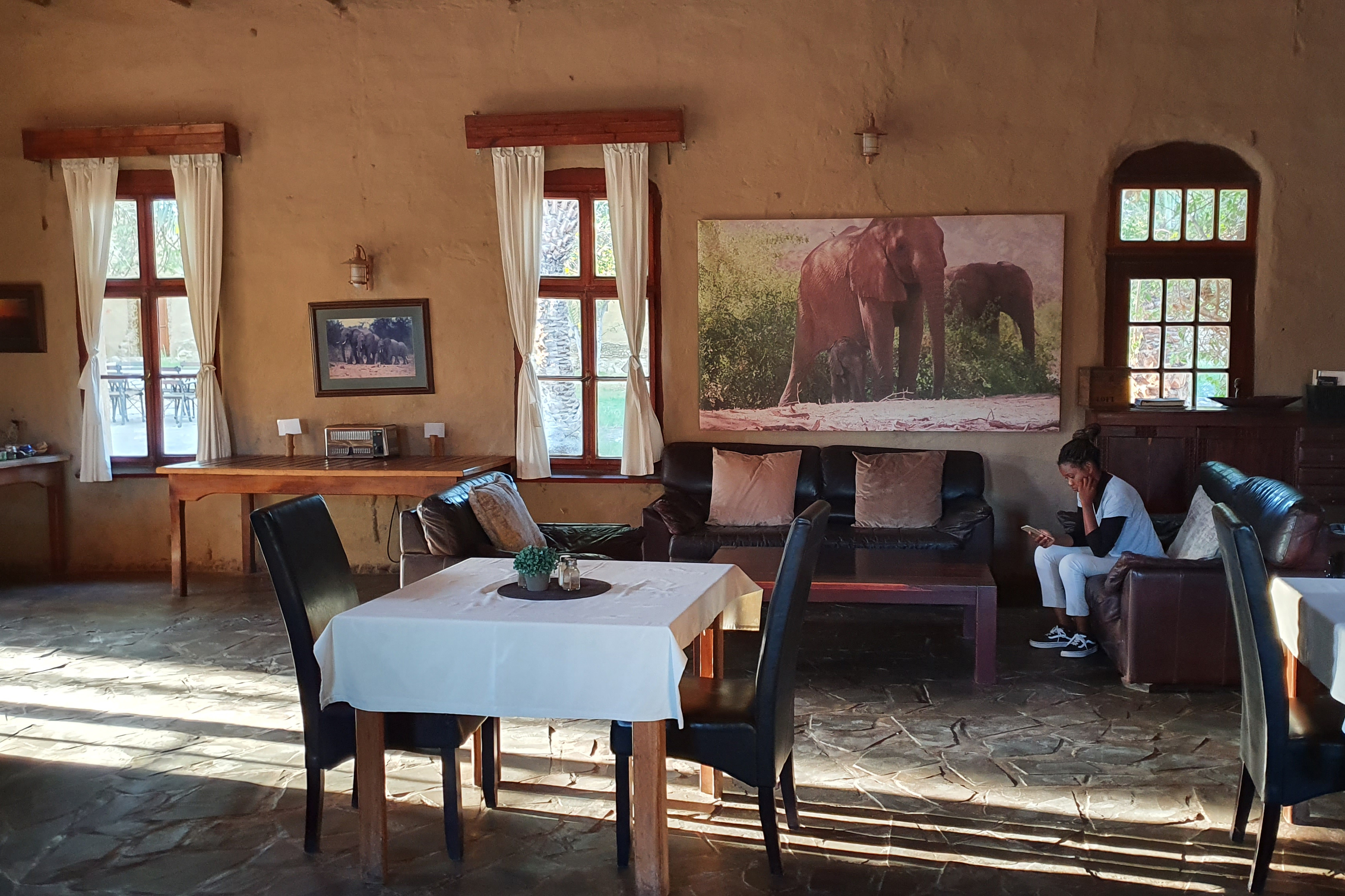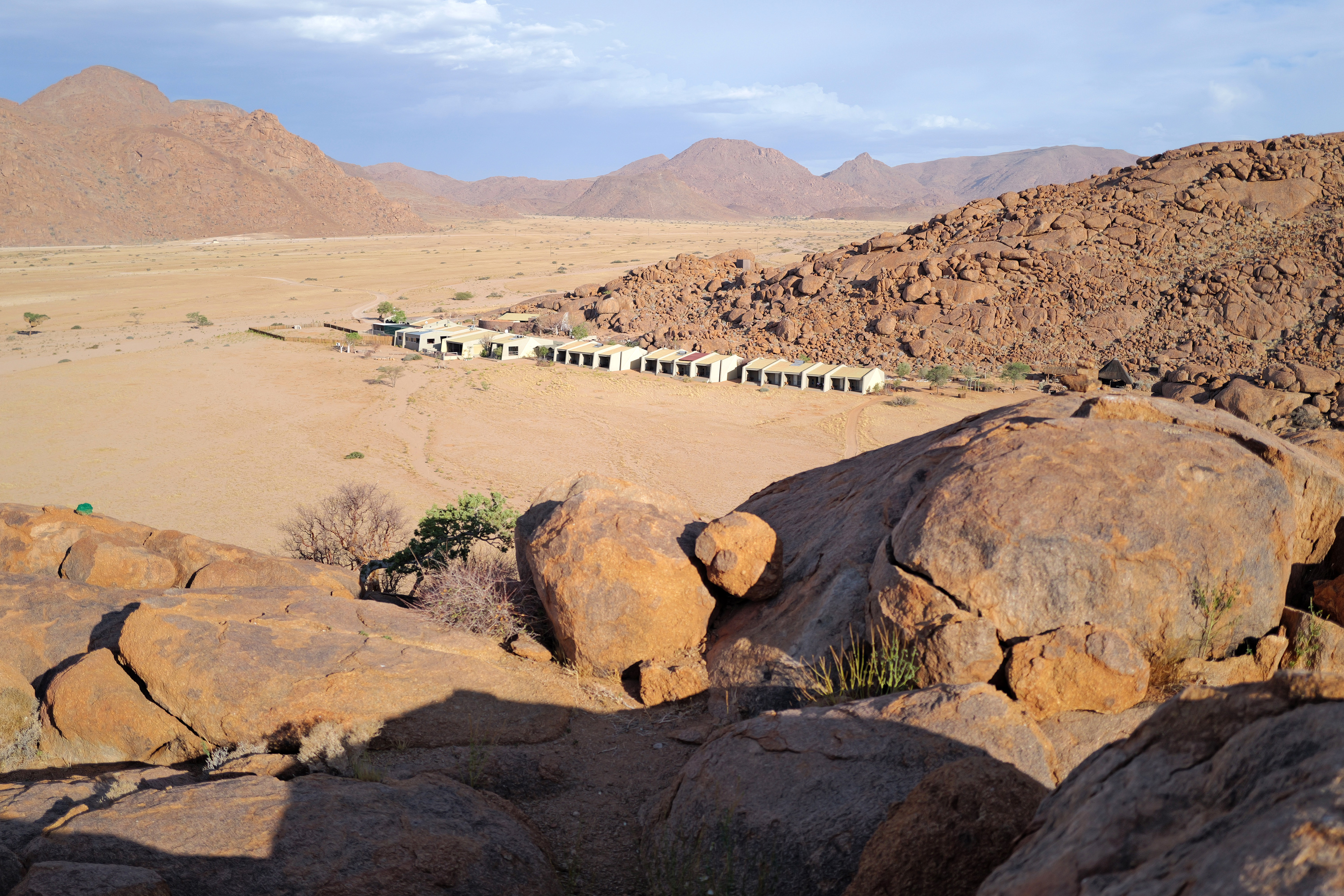 Sollten sich Wüstenelefanten in der Nähe der Lodge befinden, so können wir nach dem Frühstück eine Pirschfahrt im offenen Safari-Truck durchführen. Hierbei lernt man die Elefanten im Ugab-Fluss aus nächster Nähe kennen. Wüstenelefanten sind keine eigene Unterart, jedoch haben sie im Vergleich zu Savannenelefanten körperliche Anpassungen, die ihnen das Überleben im Trockengebiet leichter machen. So sind ihre Füße etwas breiter, damit sie besser Wanderungen durch tiefen Sand unternehmen können. Wüstenelefanten müssen häufig sehr weite Strecken von bis zu 70 km zurücklegen, um von einem Trockenfluss zum nächsten zu gelangen. Die Trockenflüsse mit ihrem dichten, ganzjährig grünen Baum- und Strauchbewuchs bilden nämlich die Hauptnahrungsquelle für die Elefanten im Nordwesten Namibias. Sollten die Elefanten nicht da sein, so können wir auf einer Wanderung die Felszeichnungen des Brandbergs wie die „Weiße Dame“ besuchen. Als Teil der Forscher-Tour werde ich Ihnen am Brandberg die dortigen Feenkreise und Euphorbien-Büsche etwas näher vorstellen. Ich habe dort mehrere Untersuchungsflächen, die ich seit 2020 regelmäßig mit Drohnen kartiere. Bezüglich der Feenkreise ist der Brandberg eine besondere Region, denn viele der Kreise entstehen da, wo auch die giftige Euphorbia damarana vorkommt. Forscher aus Südafrika habe deshalb vermutet, dass die Euphorbien durch ihr Absterben Feenkreise verursachen könnten, indem sie das Gras um sie herum abtöten. Wir haben diese Entstehungstheorie mit einer umfassenden Studie genau unter die Lupe genommen und konnten zeigen, dass die Euphorbien nicht die Gräser vergiften, geschweige denn, dass sie Feenkreise auf diese Weise verursachen würden. Nach den Feenkreisen verlassen wir den Brandberg. Ab dem Ugab in Richtung Norden kann man nun vermehrt die für das Damaraland so typischen Wildtiere wie Zebras, Springböcke, Giraffen, Kudus und mit ganz viel Glück sogar ein Spitzmaulnashorn sehen. Im Damaraland nördlich vom Ugab beginnt nämlich das riesige Gebiet, wo das kommunale Naturschutzprojekt IRDNC in den letzten Jahrzehnten so erfolgreich gearbeitet hat. Es war auch hier im Damaraland, dass mit der Gründung des Save The Rhino Trust (SRT) Anfang der 1980er Jahre maßgeblich zum Schutz des Spitzmaulnashorns beigetragen wurde. So befindet sich nach wie vor eine wichtige Feldstation von SRT am Ugab auf der Westseite des Brandbergs, von wo aus regelmäßige Patrouillen zum Schutz der Nashörner durchgeführt werden. Am späten Nachmittag werden wir dann im Gebiet um Twyfelfontein ankommen, was durch seine bizarre Landschaft von vielen kleinen Granit-Inselbergen gekennzeichnet ist. Sie werden in der sehr komfortablen Twyfelfontein Country Lodge übernachten. Die Lodge ist wunderschön in die Berglandschaft von Twyfelfontein integriert und bietet beste Erholung.
