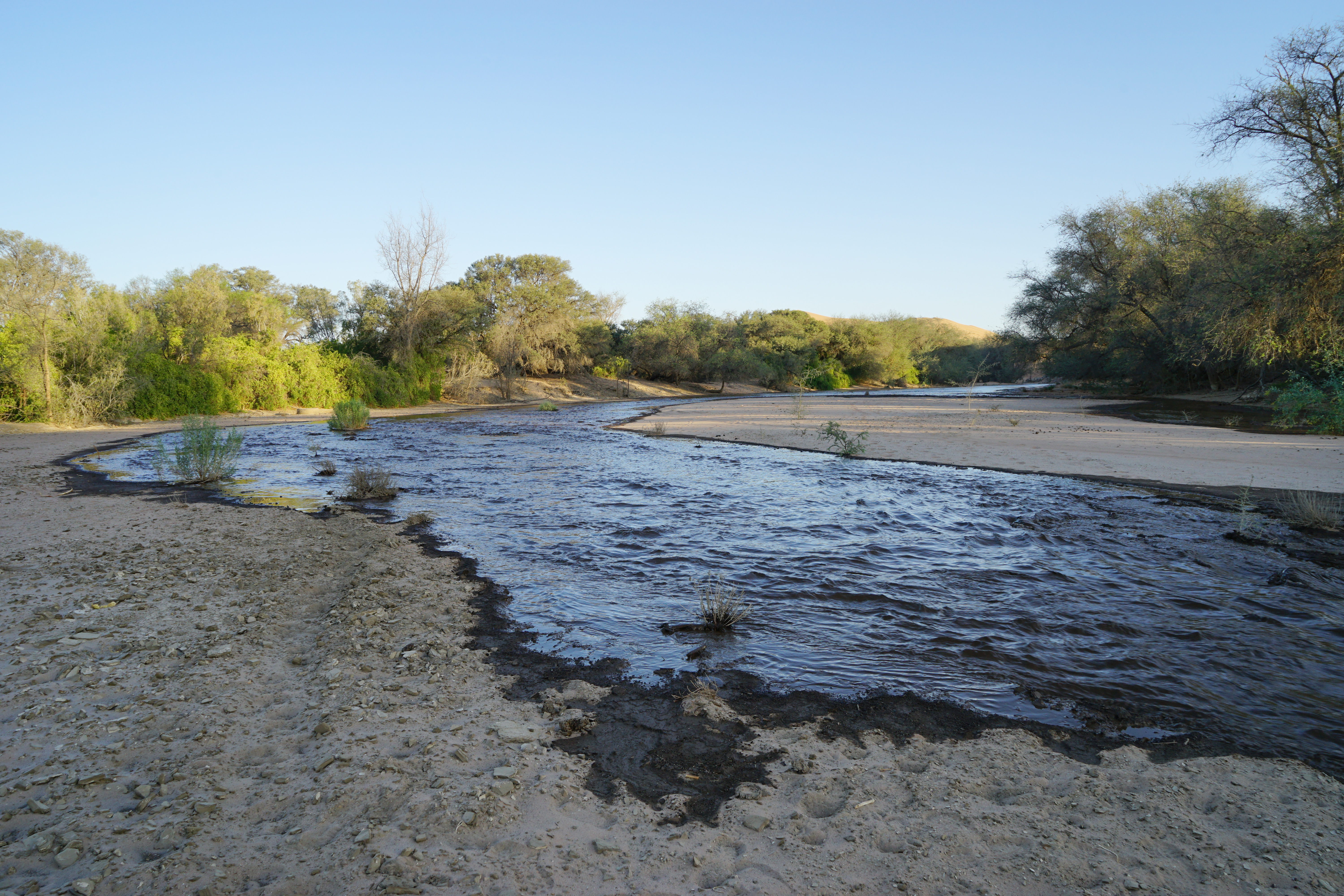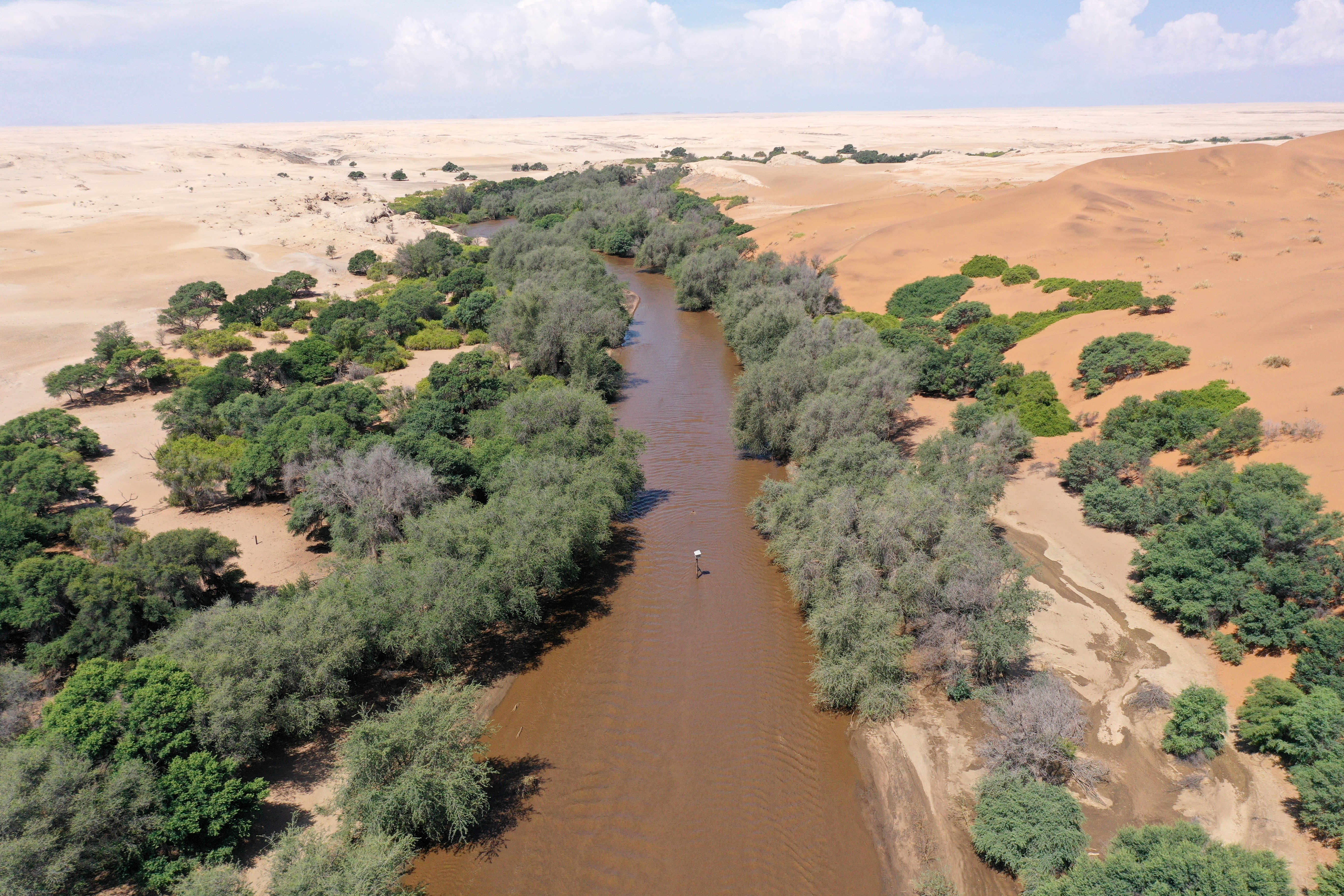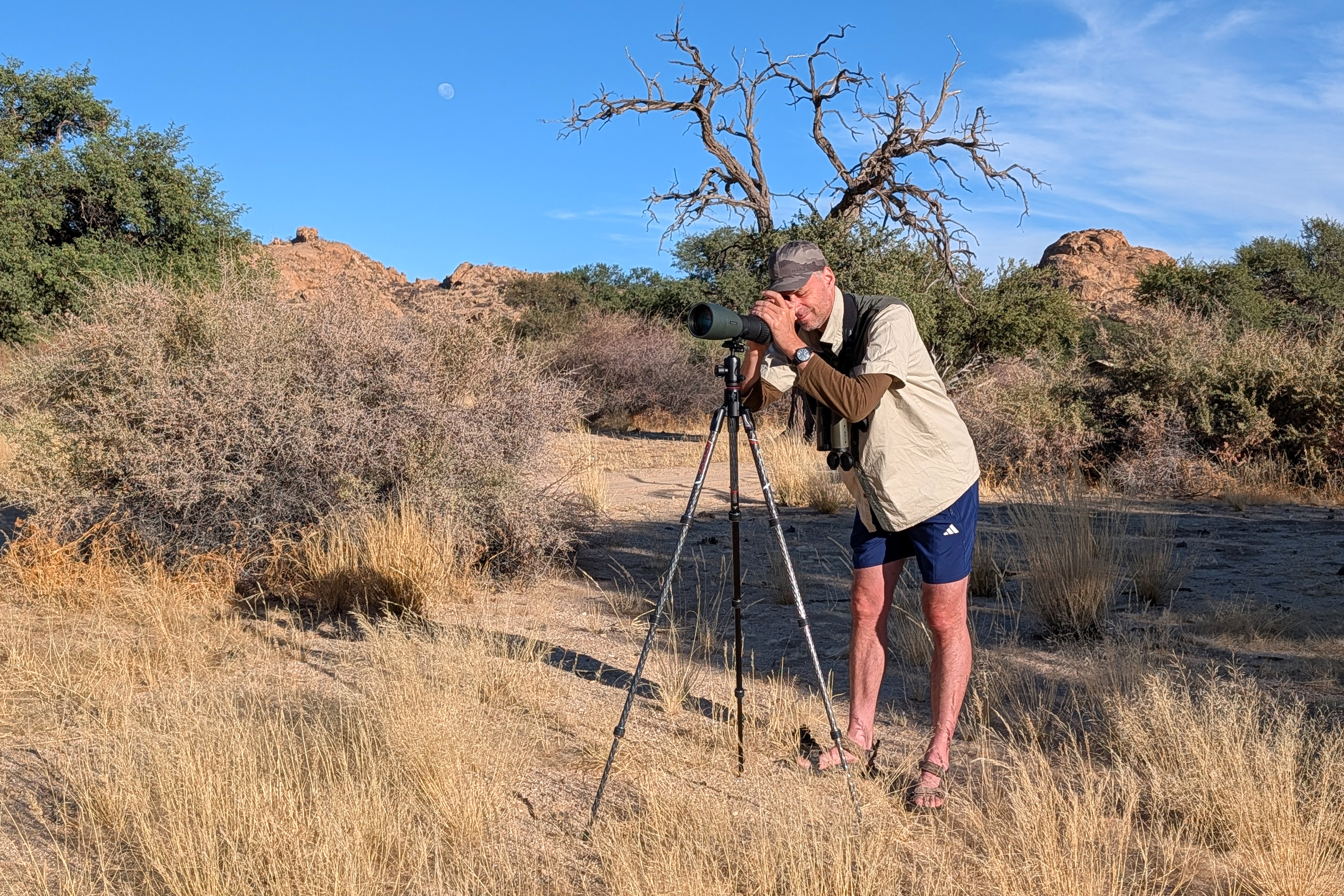 Gobabeb wurde als Wüstenforschungsstation 1962 gegründet. Der Ort wurde behutsam ausgewählt, denn er ist ideal, um die botanische und zoologische Vielfalt der Wüste zu studieren. Gobabeb liegt nämlich am Schnittpunkt von drei verschiedenen Lebensräumen: das Namib-Sandmeer im Süden, der Schotterwüste im Norden und dazwischen befindet sich der Kuiseb, ein Trockenfluss der nur zu guten Regenzeiten für wenige Tage oder Wochen fließt. Er ist eine wichtige lineare Oase, denn er ermöglicht das Wachstum von großen Bäumen, die sich als grünes Band durch die karge Namib ziehen. Dieses Band hilft somit vielen Wildtier- und Vogelarten selbst bei größter Trockenheit zu überleben. Gobabeb hat ein hyperarides Klima mit weniger als 30 mm Regen im langzeitlichen Jahresdurchschnitt. Dafür zieht aber an über 90 Tagen Nebel vom Atlantik ein, der eine wichtige Wasserquelle für viele Tier- und Pflanzenarten ist. Ich habe Gobabeb erstmalig 1998, zu meinen Studienzeiten in Namibia, auf einer ökologischen Exkursion kennengelernt. In jener Exkursionswoche erfuhren wir, wie der Nebeltrinker-Käfer auf den Kopf stehend, die morgendlichen Tautropfen in seinen Mund fließen lässt oder wie das Dünengras Stipagrostis sabulicola Wassertropfen aus dem Nebel filtert. Ebenso vergruben wir eimerartige Fallen im Dünensand, um morgens die darin gefangenen Eidechsen, Geckos und Käfer zu bestimmen. Gobabeb zieht jedes Jahr eine Vielzahl von Wissenschaftlern an. Schon damals bauten 1998 Forscher eine Glaspyramide, in die sie Schwämme legten, sodass sie sich nachts mit Wasser vollsaugten. Morgens schlossen die Forscher die Seitenwände der Pyramide und die Sonne verdampfte das Wasser aus den Schwämmen, sodass wertvolles Wasser an den Scheiben hinunterlief. Dies ist nur ein Beispiel für kreative Forschung in Gobabeb. Als assoziiertes Mitglied von Gobabeb bin ich regelmäßig in der Forschungsstation zu Besuch. Unter anderem untersuche ich dort im Kuiseb, wie sich verschiedene Baumarten wie Kameldornbäume oder Anabäume über die Jahre entwickeln. Dafür kartieren wir jedes Jahr seit 2020 dieselben Waldflächen mit Drohnen und analysieren die Abstände der Bäume vom wasserführenden Flussbett. Dabei kann man das Absterben der Bäume je nach Distanz zum Wasser auswerten. Kameldornbäume haben besonders tief reichende Wurzeln und sind weniger gezwungen, nahe unten am Flussbett zu wachsen. Auf unserer Forscher-Tour werden wir ausgiebig Zeit haben, die Vielfalt des Wüstenlebens in Gobabeb kennenzulernen. Im Flussbett kann man sehr schön mit dem Spektiv oder Fernglas die Vielfalt der Vögel beobachten. Maskenweber, Rotaugenbülbül, Glanzsichelhopfe und viele weitere Arten lassen sich blicken. Am Morgen bei Nebel kann man auf den Dünen den Nebeltrinker-Käfer sehen oder seinen besonders schnellen Verwandten – den Namibwüstenkäfer Onymacris plana. Im schattenreichen Flussbett können wir die Baumriesen bestaunen, selbst wenn die Tageszeit schon etwas forstgeschritten ist. Ebenso werden wir die Nara-Pflanzen sehen, die zu den Kürbisgewächsen zählt. Sie ist mit ihren großen Früchten besonders wertvoll für die heimischen Topnaar – einem Namavolk, das nur am Kuiseb lebt. Gobabeb ist ideal, um Einblicke in die Wüstenforschung zu erlangen. Es besteht an diesem Tag auch die Möglichkeit, eine geführte Tour durch die Station zu machen, bei der zum Beispiel die besondere Wasseraufbereitung erklärt wird, die Stromgewinnung oder die vielen Messinstrumente, die überall um die Station herum zu sehen sind. Gobabeb bietet auch einen sehr beeindruckenden Sternenhimmel, den wir in der Nacht erkunden können. Mit einer UV-Lampe lassen sich nachts auch Skorpione finden, die hin und wieder an Bäumen im Kuiseb sitzen.
