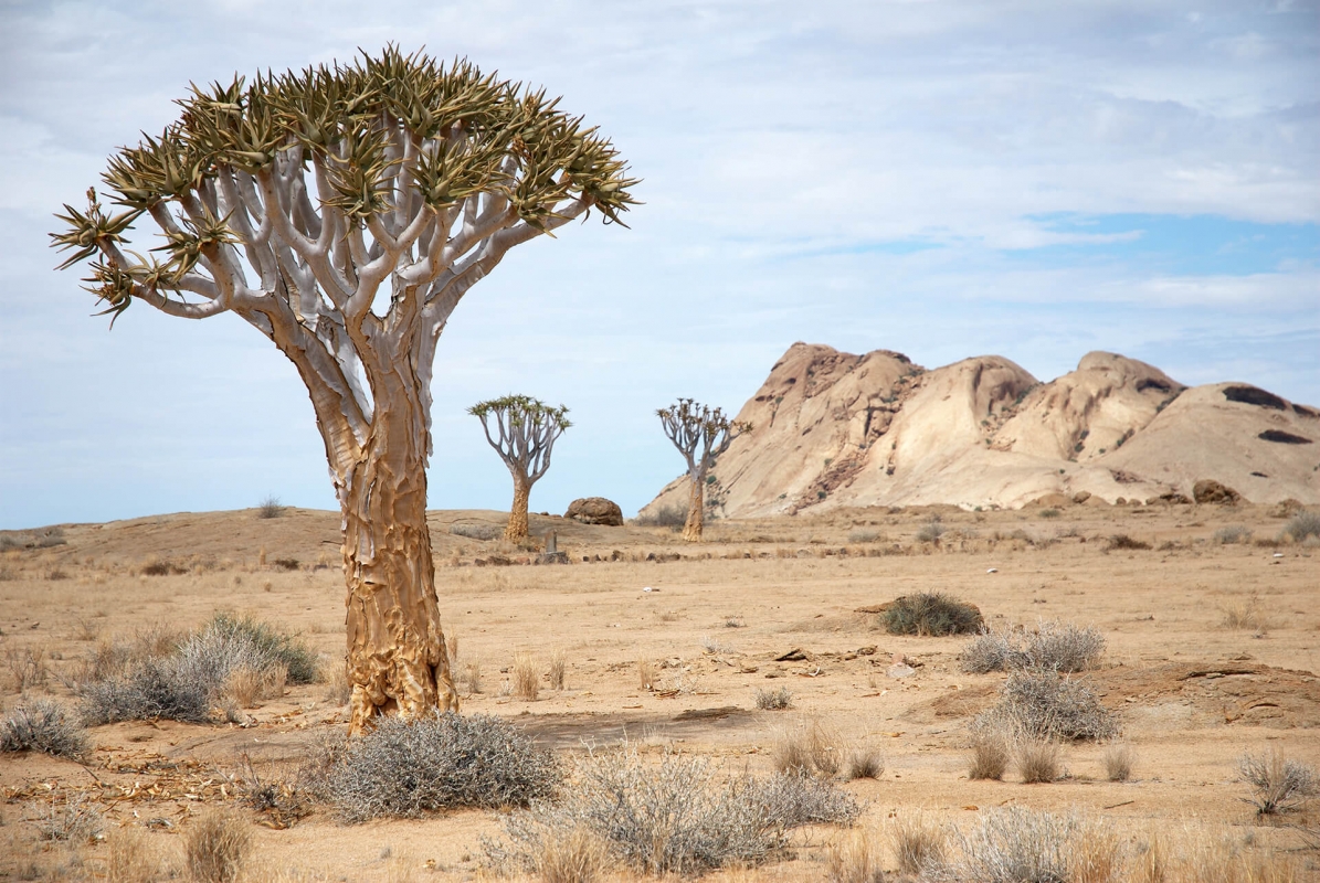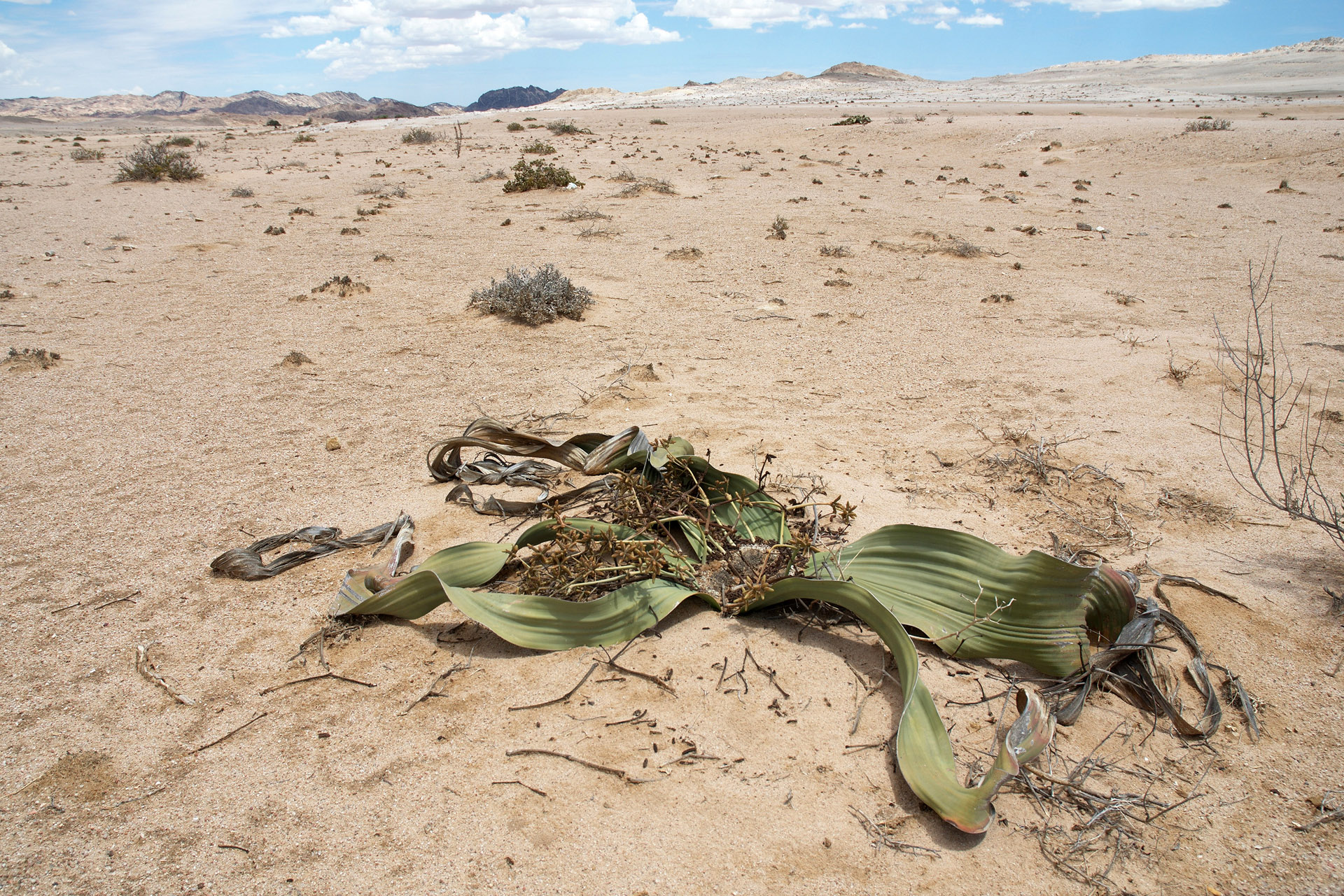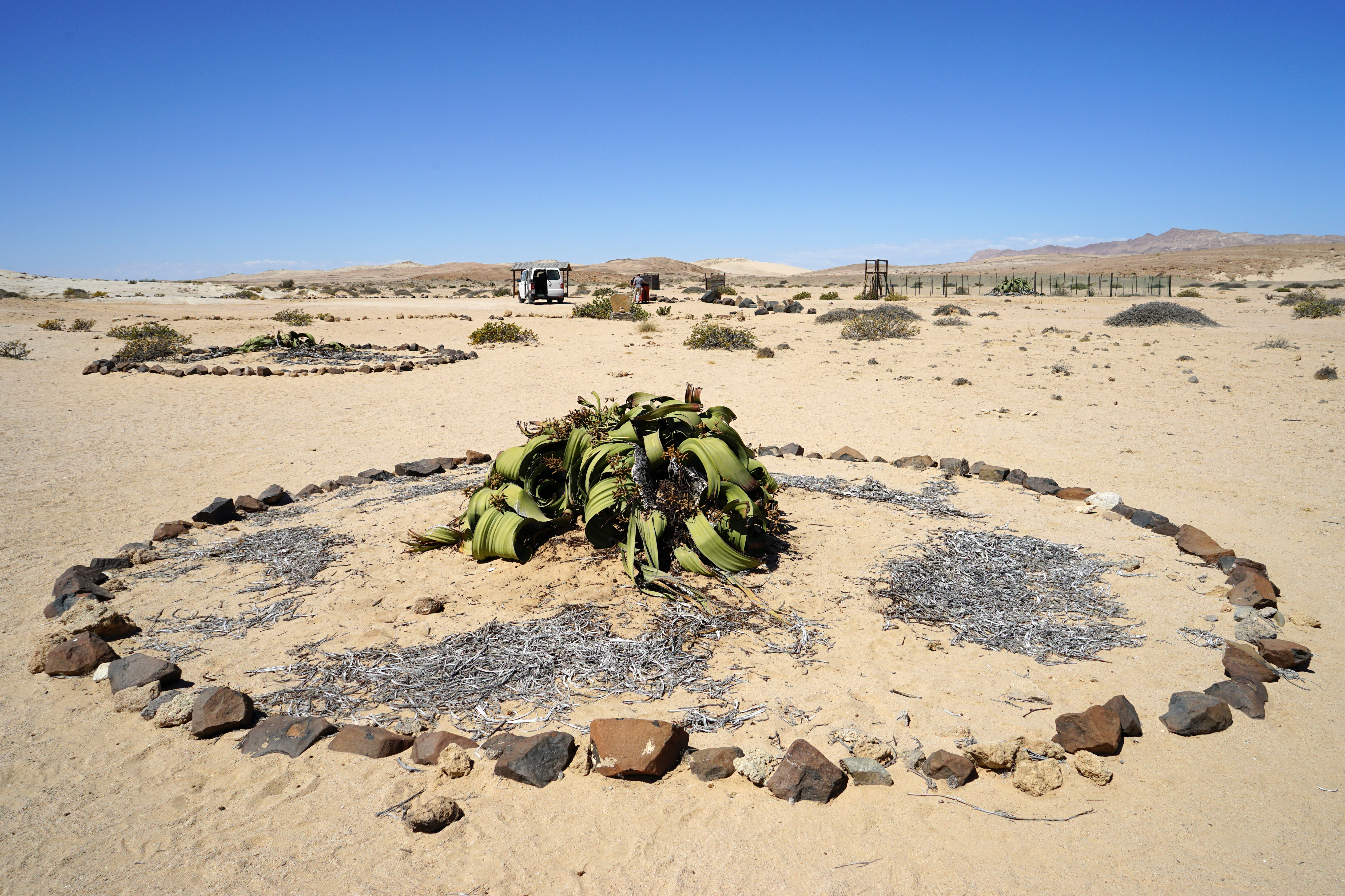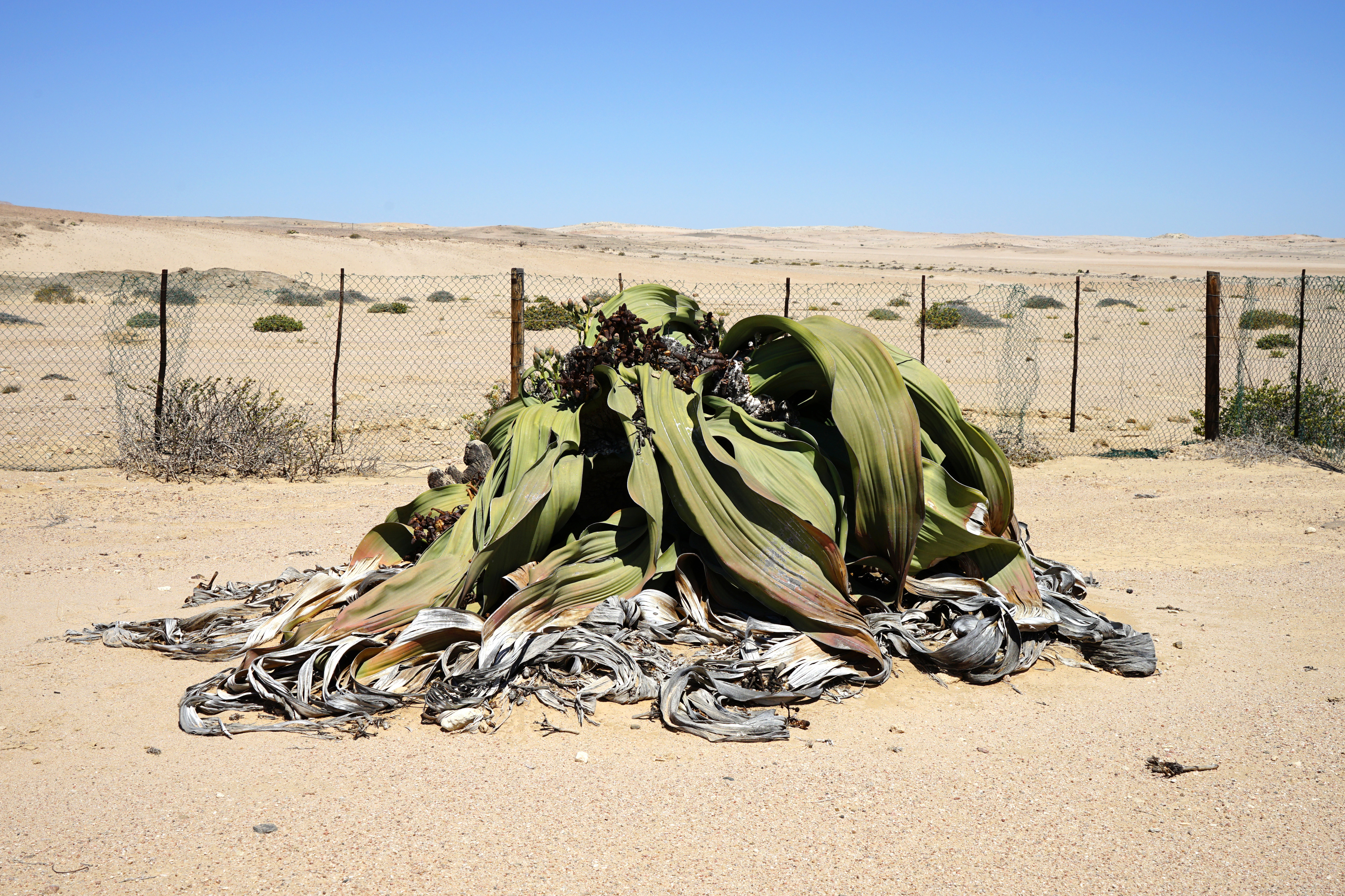 Am Morgen bietet sich auf Donkerhuk eine kleine Wanderung an. Wer an der reichen Vogelwelt interessiert ist, der kann auch ausgiebig mit dem Fernglas nach Frankolinen, Glanzstaren und vielen anderen Vögeln Ausschau halten. Ich habe das Swarovski-Spektiv mit der 25- bis 60-fachen Vergrößerung stets dabei, sodass wir den gefiederten und anderen Tieren im Tal ganz nah kommen werden. Dann verlassen wir Donkerhuk und fahren auf der C28-Straße nach Westen. Hier können wir an der Blutkuppe halten und uns diesen markanten Granitfelsen ansehen. Die Blutkuppe ist ein Inselberg, den ich seit 1997 kenne. Damals bin ich mit unserem australischen Ökologie-Dozenten, Grant Wardell-Johnson, dorthin, um sämtliche Pflanzen der Blutkuppe zu bestimmen. Solch Inselberge sind nämlich ein Hotspot der Biodiversität, weil sie von Wind verwehte Samen ansammeln oder weil Tiere dort Wasser suchen und Samen aus dem Umland hinbringen. An der Blutkuppe befinden sich auch riesige Euphorbia virosa, die als giftigstes Wolfsmilchgewächs Namibias gilt. Ebenso finden wir dort mit dem landestypischen Köcherbaum (Aloidendron dichotomum zuvor genannt Aloe dichotoma) ein weiteres Beispiel für Pflanzen, die in der Wüste Wasser in einem dicken Stamm speichern. Der Name Köcherbaum kommt von den Ästen, die die Buschmänner des San-Volkes früher als Pfeilköcher auf Jagd verwendeten. Das Wort „dichotoma“ kommt ebenso von den Ästen, die sich immer in zwei weitere Äste teilen. An der Blutkuppe gibt es einen bestimmten Köcherbaum, den ich seit 1999 wiederholt fotografiere. Anhand der Fotos kann man sehen, wie langsam der Baum in dieser extrem trockenen Wüste wächst. Weiter geht es dann durch das tiefe Tal des Swakop-Flusses, der ein riesiges Einzugsgebiet in Zentral-Namibia hat und in der Stadt Swakopmund, wie der Name schon sagt, mündet. Auf der Nordseite des Swakop befinden sich die Welwitschia-Ebenen mit diesen uralten Welwitschia mirabilis. Diese Pflanzen hatte ich schon 1998 auf einer studentischen Exkursion weiter im Norden vermessen. Hier am Swakop findet man jedoch besonders große Exemplare, die besonders alt sind. Diese Welwitschias können über 2000 Jahre alt und 1,5 m hoch werden. Sie bestehen aus lediglich zwei ständig wachsenden Blättern, die im Laufe der Jahre mehr und mehr ausfransen, aber nie abgeworfen werden. Diese Pflanzen sind getrenntgeschlechtig, das heißt, es gibt männliche und weibliche Pflanzen. Sie sind etwas ganz Besonderes denn sie kommen nur entlang der Namib vor, ihr Durchschnittsalter beträgt 500-600 Jahre und sie gehören wie die Nadelbäume zu den Nacktsamern. Weiter geht es zur Mondlandschaft, wo wir auf dem Wege noch die Überreste eines Lagers der deutschen Schutztruppe finden. Die alten Dosen und Flaschen auf dem Rastplatz liegen nun seit 1915 unverändert dort. Sie zeugen, wie gut die Wüste von Menschen hinterlassene Objekte konserviert. An der Mondlandschaft können wir dann hinab ins Tal des Swakop schauen. Hier sieht die karge Wüste wirklich wie auf dem Mond aus. Auf dem restlichen Weg nach Swakopmund werden wir weiter die Augen offenhalten und nach besonderen Pflanzen und Tieren der Wüste schauen. Wenn wir Glück haben, können wir noch den einen oder anderen Wüstenbewohner wie das Namaqua-Chamäleon entdecken, was mit bis zu 25 cm Länge zu den größten Chamäleons im südlichen Afrika gehört. Ebenso werden wir den Dollarbusch (Zygophyllum stapfii) und die Bleistiftpflanze (Arthraerua leubnitziae) sehen. Der Dollarbusch hat seinen Namen von den runden, münzförmigen Blättern, die Wasser speichern. Die Pflanze dreht die Ränder ihrer Blätter der Sonne zu, um sich vor Verdunstung und Austrocknung zu schützen. Die Bleistiftpflanze hat dünne stiftartige Blätter, um die Verdunstung zu minimieren. Nun fahren wir zur Küste, wo wir am späten Nachmittag im Hansa Hotel in Swakopmund ankommen werden. Am frühen Abend werden wir die Stadt erkunden und uns ein schönes Restaurant suchen. In Swakop kann man hervorragend Fisch, Tintenfischringe oder andere Meeresfrüchte speisen.