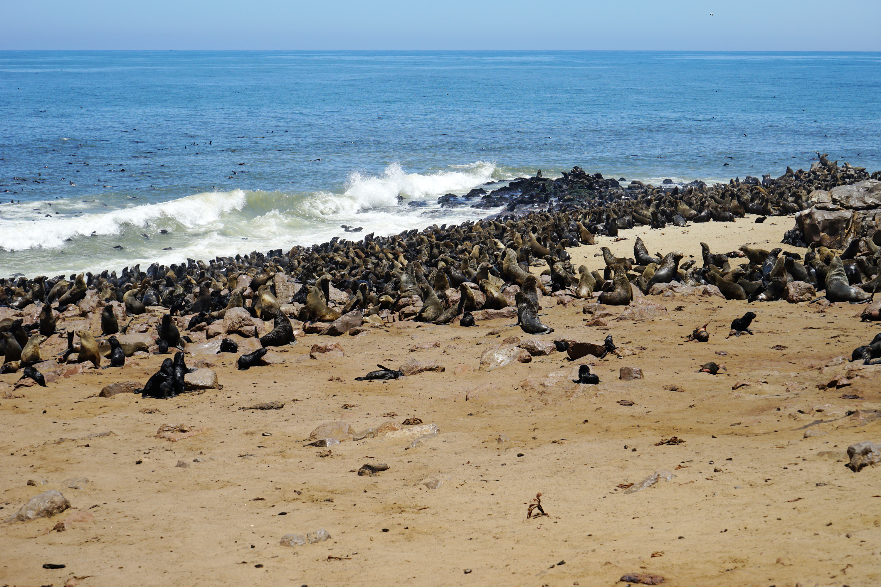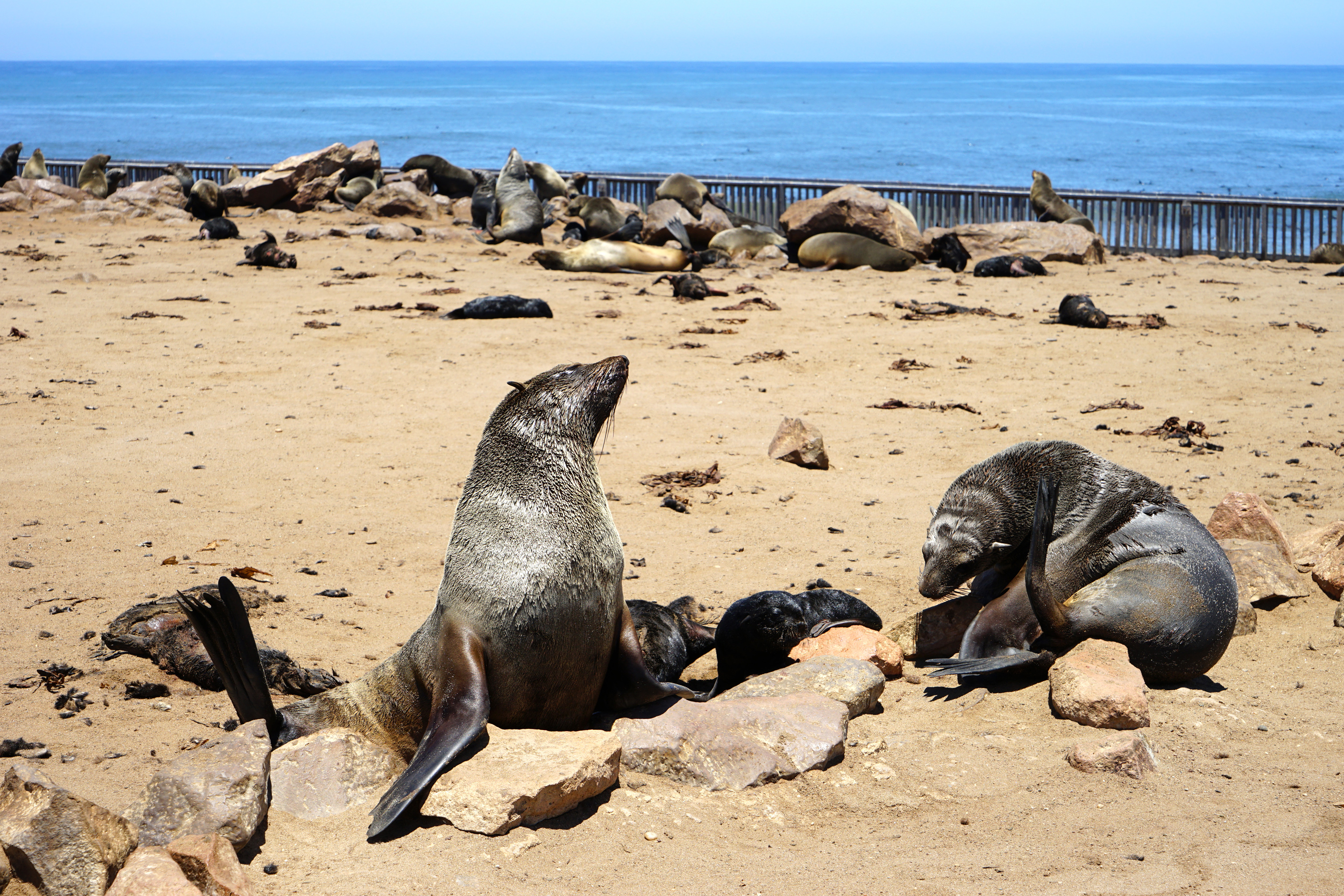 Heute geht es ins Damaraland. Anstelle von weiten flachen Ebenen oder Sanddünen werden Sie nun eine etwas mehr hügelige und felsige Landschaft erleben. Auf unserer Reise werden wir markante Erhebungen wie die Spitzkoppe oder Namibias höchsten Berg, den Brandberg sehen. Sie können sich dabei entscheiden, ob Sie die Spitzkoppe von Nahem oder aus der Ferne sehen wollen. Wenn Sie lieber zum Kreuzkap mit seiner riesigen Robbenkolonie fahren wollen, dann sehen wir die Spitzkoppe nur aus der Ferne. Dafür besuchen wir die weltweit größte Kolonie von Südafrikanischen Seebären (Arctocephalus pusillus), die zur Brutzeit im November und Dezember bis zu 210.000 Robben umfasst. Die Südafrikanischen Seebären gehören zu den Ohrenrobben, die bei so einer großen Anzahl viel Lärm machen und sehr „intensiv“ riechen. Neben der Kolonie steht auch ein Kreuz, welches der portugiesische Seefahrer Diego Cão dort 1486 aufgestellt hat. Er war der erste Europäer, der diesen Ort erreicht hat. Sollten Sie lieber die Spitzkoppe besuchen wollen, so fahren wir zum Brandberg auf einer weiter südlichen Route. Die 1728 m hohe Spitzkoppe ist ein außergewöhnlicher Berg – wird sie doch auch das Matterhorn von Namibia genannt. Der Granitfelsen ragt ungefähr 670 m über die Ebene hinaus. In der gesamten Umgebung befinden sich kleinere rundliche Felsformationen von denen sich die meisten aufgrund der flachen Anstiege und porösen Granitoberfläche leicht besteigen lassen. Öfters hört man in den Felsschluchten den Widerhall der Rufe umherfliegender Bergstare, die mit ihren weißen Flügeln und sonst schwarzen Körpern leicht zu erkennen sind. Die Spitzkoppe ist in jedem Fall ein Paradies für Naturliebhaber. Fotografen kommen voll auf ihre Kosten und wir werden deshalb vor Ort eine längere Pause einlegen. Nach dem Mittag geht es weiter Richtung Norden, zur kleinen Siedlung Uis, wo wir ebenfalls Halt machen werden. Uis ist bekannt für sein Zinnbergwerk, das viele Jahre lang stillgelegt war, jetzt aber wieder in Betrieb ist. Heutzutage setzen sich einige Namibier hier zur Ruhe, weil der Ort so sehr beschaulich ist und nur wenig gemein mit dem hektischeren Windhoek hat. Nachdem wir Uis hinter uns gelassen haben, können wir zur westlichen Seite den mit 2573 m höchsten Berg Namibias – den Brandberg sehen. Hier nahe dem Brandberg befindet sich auch ein weiterer Hotspot mit Feenkreisen, die es in der Anzahl sonst nur noch weiter nördlich, zum Beispiel in der Giribes-Ebene oder dem Marienflusstal gibt. Gleich am Brandberg verläuft der Ugab-Fluss, der allerdings nur zur Regenzeit fließen kann. Am Ugab liegt auch die Brandberg White Lady Lodge, in der wir übernachten werden. Diese Lodge ist eine wahrlich grüne Oase am sehr trockenen Brandberg. Sie bietet einen schönen Pool, einen gepflegten Garten, einen hoch gelegenen Sundowner-Platz und vielleicht die besten Milchshakes von Namibia. In den beliebten Safari-Zelten der Lodge bekommt man einen herrlichen Eindruck von der afrikanischen Natur. Durch die Zeltwände hört man die nächtlichen Vögel und Zikaden, was ein unvergleichliches Erlebnis ist. Mit etwas Glück, kann man am nächsten Morgen auch Elefanten bestaunen, die regelmäßig den Ugab auf und ab wandern.