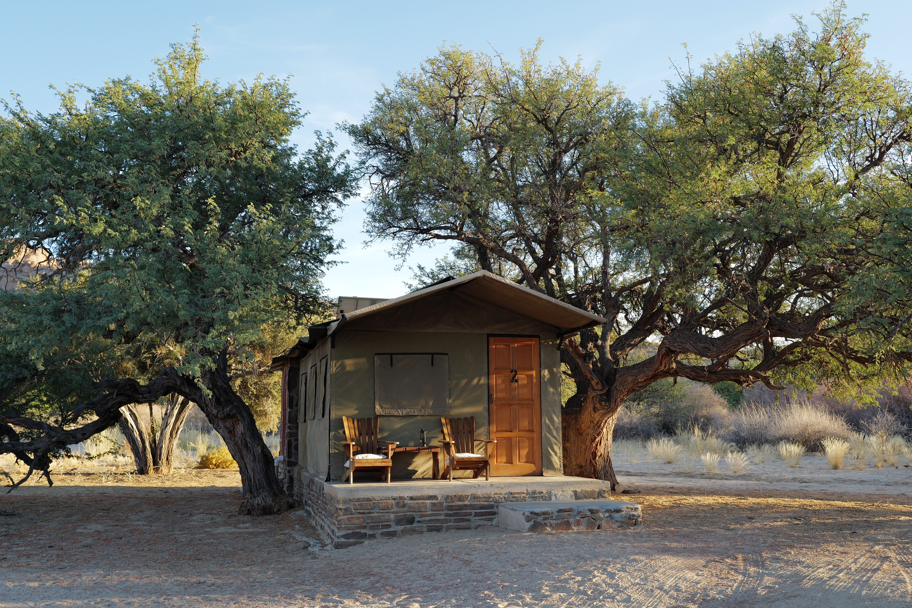 Am heutigen Tag fahren wir zur Wüstenforschungsstation Gobabeb. Zuerst kommen wir in Solitaire mit seiner kleinen Tankstelle und der berühmten Bäckerei vorbei. Dann durchqueren wir den Gaub-Canyon und fahren um den markanten Rotstock-Berg. Auf Wunsch können wir dort Richtung Gamsberg fahren und den Desert Botanic Garden auf der Farm Berghof besuchen. Auf dieser Farm werden verschiedene Wüstenpflanzen wie Aloe und Lithops gezüchtet. Weiter geht es zum Kuiseb-Canyon nach Westen, wo es immer trockener wird. Die Landschaft ist fast immer sehr karg und ohne Grasbewuchs. Nur in außergewöhnlich guten Regenjahren, wie in 2022, kann sich die Landschaft innerhalb kürzester Zeit in einen grünen Teppich verwandeln. Nachdem wir den Kuiseb-Canyon durchquert haben, besuchen wir einen schönen Aussichtspunkt, wo man weit in den Canyon hineinblicken kann. Der Kuiseb mit seinen teils lang anhaltenden Wasserstellen, die sich im Schatten der hohen Canyon-Felsen halten können, hat auch zu Beginn des Zweiten Weltkrieges zwei deutschen Geologen ein Überleben gesichert. Um einer Inhaftierung zu entgehen, versteckten sich Henno Martin und Hermann Korn 1940 in den Schluchten des Kuiseb, wo sie zweieinhalb Jahre lang ein einfaches, ständig vom Hunger getriebenes Dasein als Jäger führten. Henno Martins Buch „Wenn es Krieg gibt, gehen wir in die Wüste“ schildert eindrucksvoll die damalige Robinsonade und das Buch gilt als eine Hommage an die karge, aber dennoch zauberhafte Schönheit der Namib-Wüste. Wir werden auf unserer Tour das sogenannte Karpfenkliff, die erste „Wohnung“ der Geologen besuchen, die auch als Henno Martin & Hermann Korn Shelter bekannt ist. Dann fahren wir Richtung Gobabeb, wo wir linker Hand zunehmend die roten Sanddünen immer näher kommen sehen. Am späten Nachmittag können wir auf die „Hausdüne“ von Gobabeb steigen, von wo man einen herrlichen Blick über die Landschaft hat. Von hier aus erstrecken sich die Lineardünen über 300 km weit nach Süden in Richtung Lüderitz. Im Norden sieht man die flache Schotterwüste und dazwischen den Kuiseb-Fluss mit seinen grünen Bäumen. In Gobabeb werden wir zwei Nächte bleiben, denn es ist ein ganz besonderer Ort, an dem es viel zu sehen gibt.