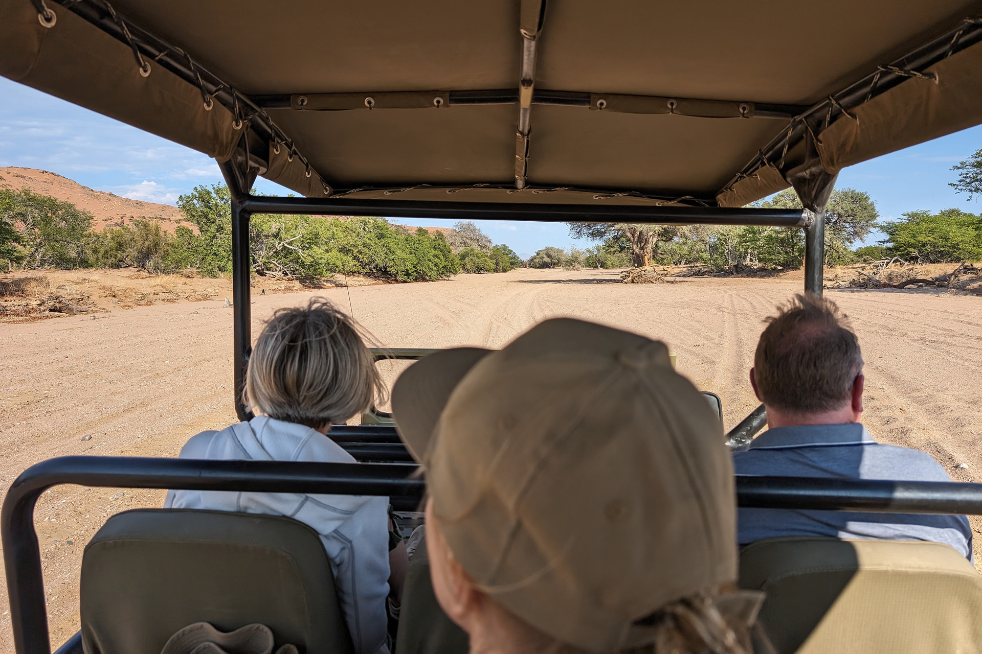 …und ich wurde nicht enttäuscht! Ganz besonders für mich war die Elefantensafari im ausgetrockneten Flussbett des Ugab. Hier hat Stephan nach Gesprächen mit Einheimischen kurzerhand die Safari - die anderenorts stattfinden sollte - umgeplant und es war ein voller Erfolg.