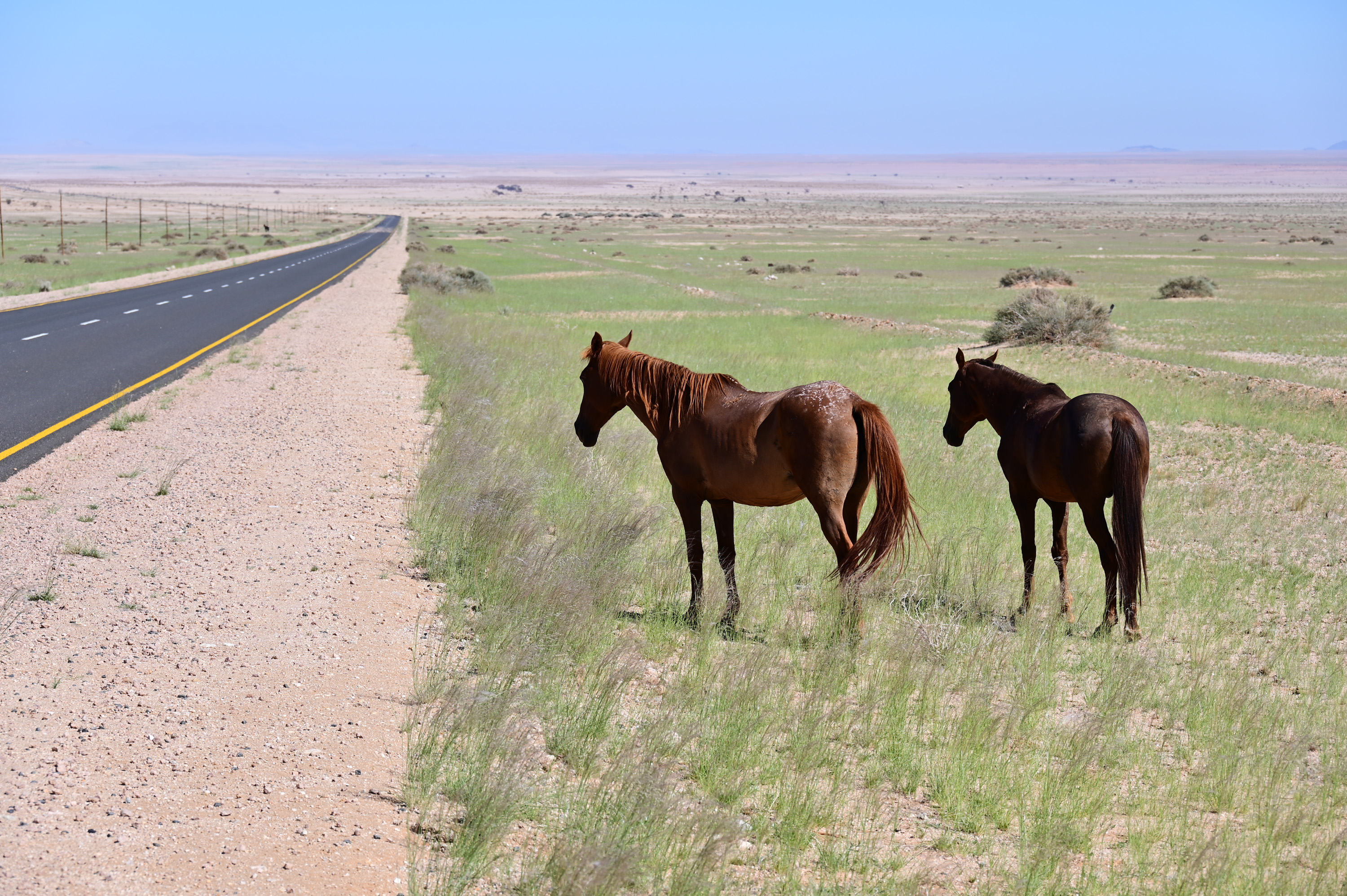 On the sixth day of the Grand North-South Tour, we head to Lüderitz. This stage of the journey takes a little longer, but it mostly takes place on deserted asphalt roads that are very comfortable to drive on. Only at the beginning do we wind our way along a narrow gravel road along the Orange River in our Land Cruiser. This road is beautifully situated and offers varied views of the wide river after every bend. At the end, we head uphill to the north and leave the deep valley of the Orange River. Soon we reach the small town of Rosh Pinah, which is characterized by mining, especially the extraction of zinc. From there, we continue towards Aus. This long asphalt road symbolizes the vastness of the south. There is hardly a more deserted place in Namibia, as the restricted diamond Sperrgebiet is on the left and huge lonely farms are on the right. After reaching Aus, we continue west to the old railway station of Garub. This abandoned railway station in Garub is a special place. I have visited this place repeatedly for research purposes, as there are fairy circles south of the railway line behind the longitudinal dunes, which occur together with euphorbias. I have been studying these fairy circles and spurge plants of the species Euphorbia gummifera since 2017, which has also led to publications in 2021 and in 2019. However, Garub is more famous for its wild horses. There is a borehole spring at Garub that was formerly used to refuel steam locomotives. This water source is also used by feral domestic horses, which have been known to exist since 1920 and date back to the German Schutztruppe era. The horses find it very difficult to survive in this extremely arid area, as rainfall is never reliable. The long-term average annual rainfall is only around 50 mm, which severely limits grass growth. The number of horses therefore fluctuates greatly and can range from 80 to 280 animals. Due to the lack of grass, the horses are often fed additional food. The horses are therefore usually very tame. They come right up to the car and often let themselves be petted. After Garub, the only way to go is west to the Atlantic coast. After an hour, we will reach Lüderitz, where we will stay for two days at the Nest Hotel right on the bay. Not far from the hotel is a traditional Portuguese fish restaurant where you can end the day watching the sunset.