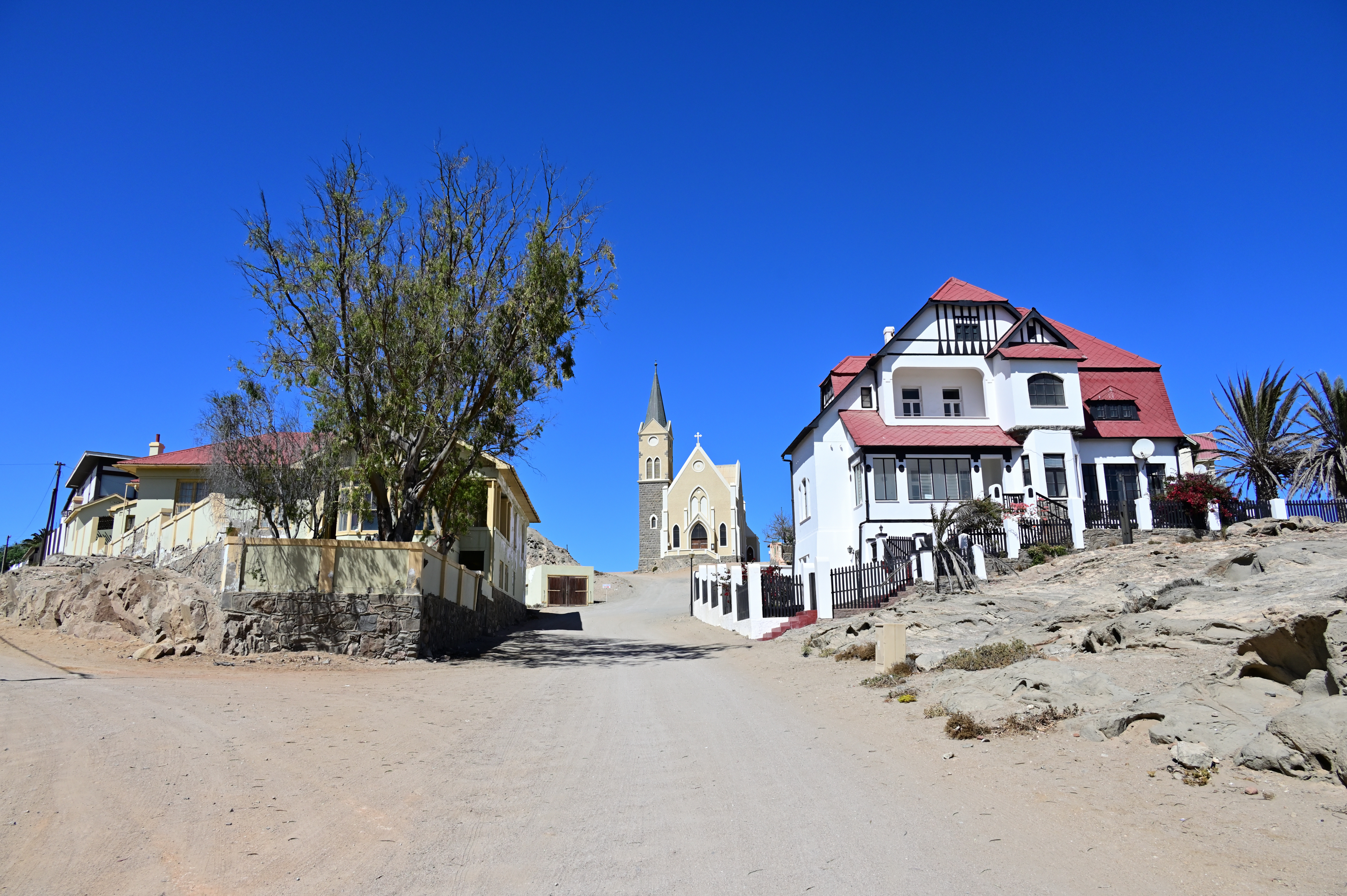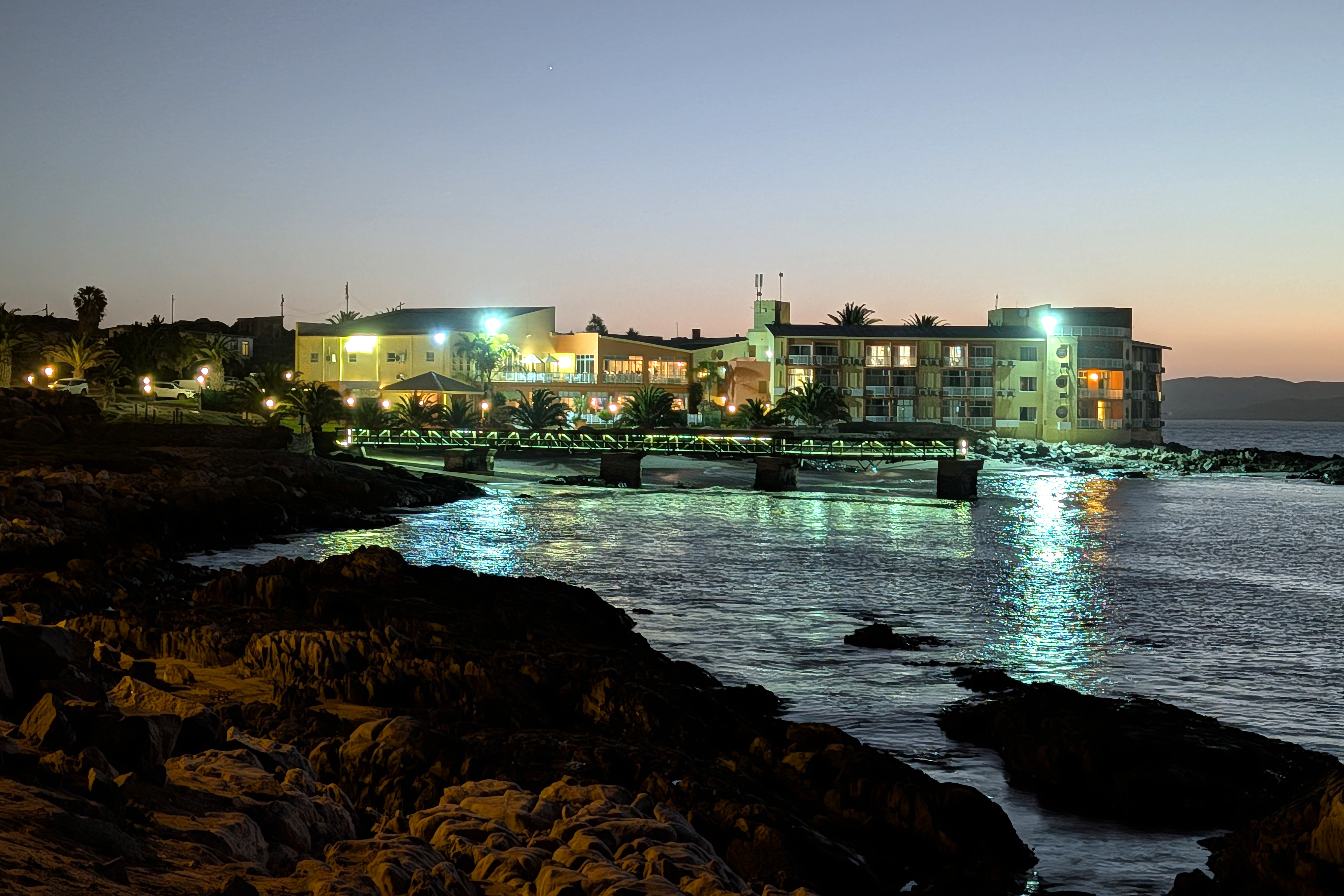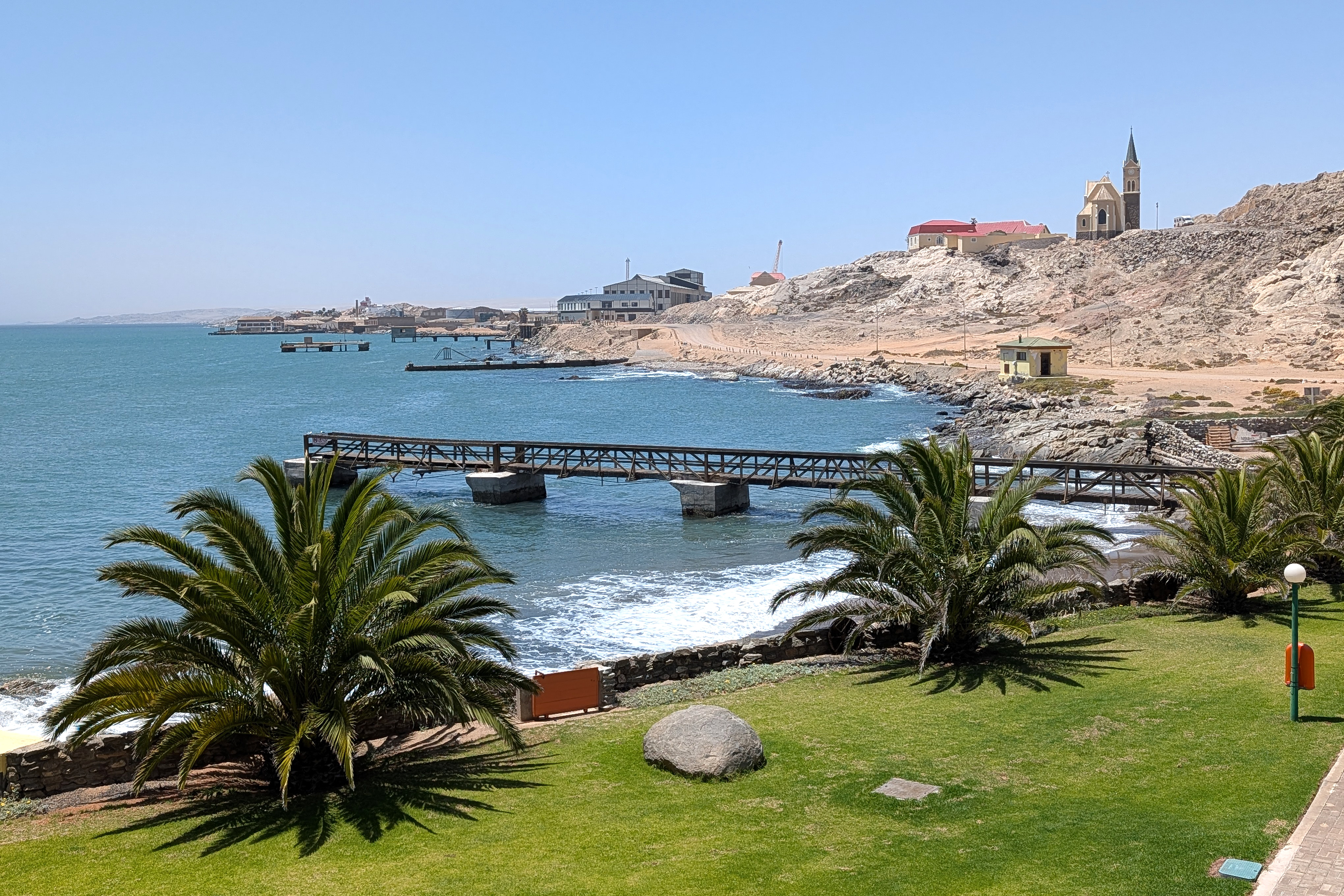 Today you will have time to get to know Lüderitz and its surroundings. On the way there, you will have already noticed how remote Lüderitz is on the Atlantic coast. The small town with its approximately 16,000 inhabitants is completely surrounded by barren desert and high sand dunes. This, combined with its historical flair, makes Lüderitz a very special place. Despite its remoteness in southwestern Namibia, Lüderitz has one decisive advantage – the town is located on a large bay, “Lüderitz Bay”, which is protected to the west by the Lüderitz Peninsula. The coastal town of Swakopmund, located more in the center of the country, does not have such a bay, so Lüderitz has been of strategic importance as a port from the very beginning. German tobacco merchant Adolf Lüderitz recognized the advantage of the bay and founded the town named after him there on May 12, 1883. He bought the surrounding land with the intention of finding mineral resources and establishing a trading post. Alfred Lüderitz immediately approached the German government with a request to protect the acquired land against possible claims by the British, who were not far away in South Africa. On April 24, 1884, Bismarck informed the German consul in Cape Town that the land acquired around Lüderitz was under the protection of the German Empire. This marked the founding of the colony of German South West Africa, which existed until it was ceded to the British-administered Union of South Africa in 1915. From 1915 to 1919, present-day Namibia was under the military administration of the Union of South Africa. From 1919 until independence on March 21, 1990, South West Africa (abbreviated S.W.A.) was administered by South Africa. The historical flair of Lüderitz can be explored on a city tour. Less than 500 meters from the Nest Hotel is the city's landmark, the Felsenkirche (Rock Church), built in 1912. The church's name comes from the rocky ground on which it stands. Below the church is the Goerke House, built in 1910 by a wealthy diamond dealer. On a tour of the city, you will see many colorful half-timbered houses and Art Nouveau buildings that give the impression that time has stood still. During our city tour, there is also the opportunity to visit the Namibia Maritime Museum or the Lüderitzbucht Museum. After our city tour, we will take a trip to the Lüderitz Peninsula. The “Grosse Bucht” (Great Bay) in the far south is very windy and popular with anglers. Here you can see giant kelp floating on the beach and in the water, which is typical of the cold Benguela Current. This brown algae can have a size up to over 40 meters high. The strong winds on the coast gave rise to the Lüderitz Speed Challenge on the peninsula in 2007. This is a surfing competition in which many world speed records have been set. The surfers reach speeds of well over 100 km/h. On our tour, we will stop at one or two bays along the way. The tour ends with a visit to Diaz Point, where there is a lighthouse and the Diaz Cross. This cross is a replica from 1929. The original cross was erected there in 1487 by the Portuguese navigator Bartolomeu Diaz. He was the first European to arrive on the peninsula while searching for the sea route to India. After the round trip across the peninsula, we drive back to the Nest Hotel. In the evening, we can walk to the waterfront and enjoy excellent fish and other seafood at the Essenzeit restaurant. The restaurant has an elevated outdoor area with a beautiful view of the harbor.