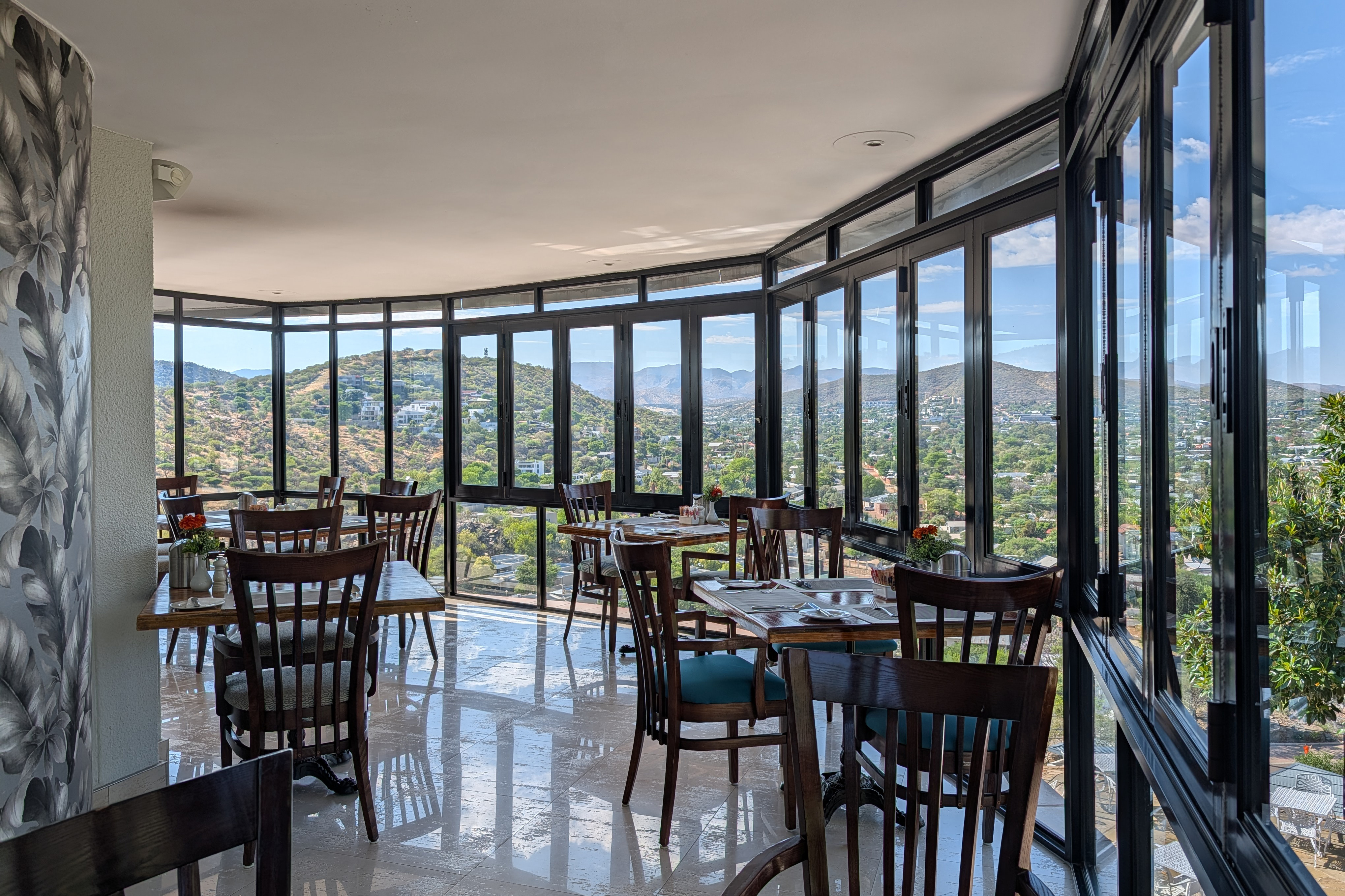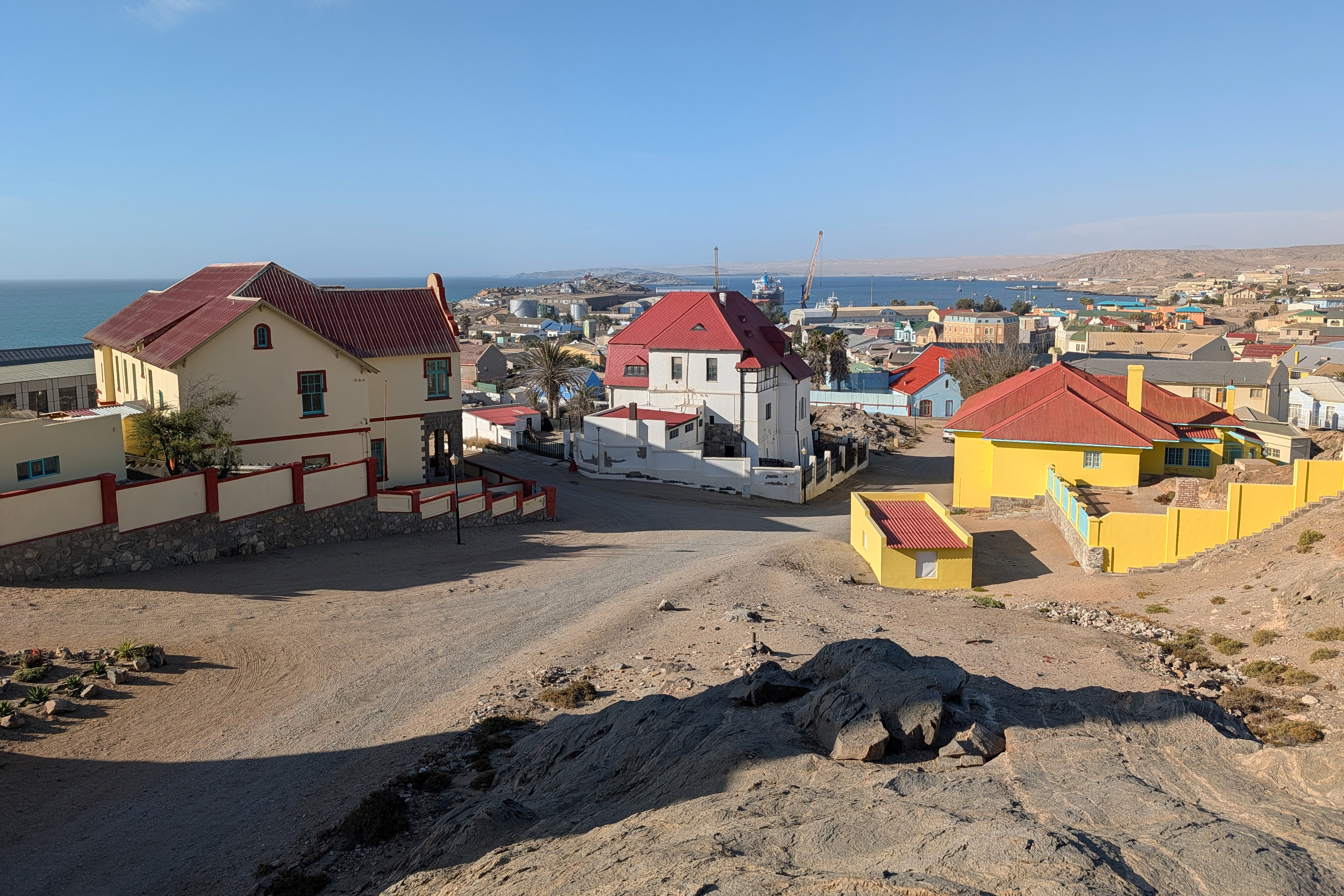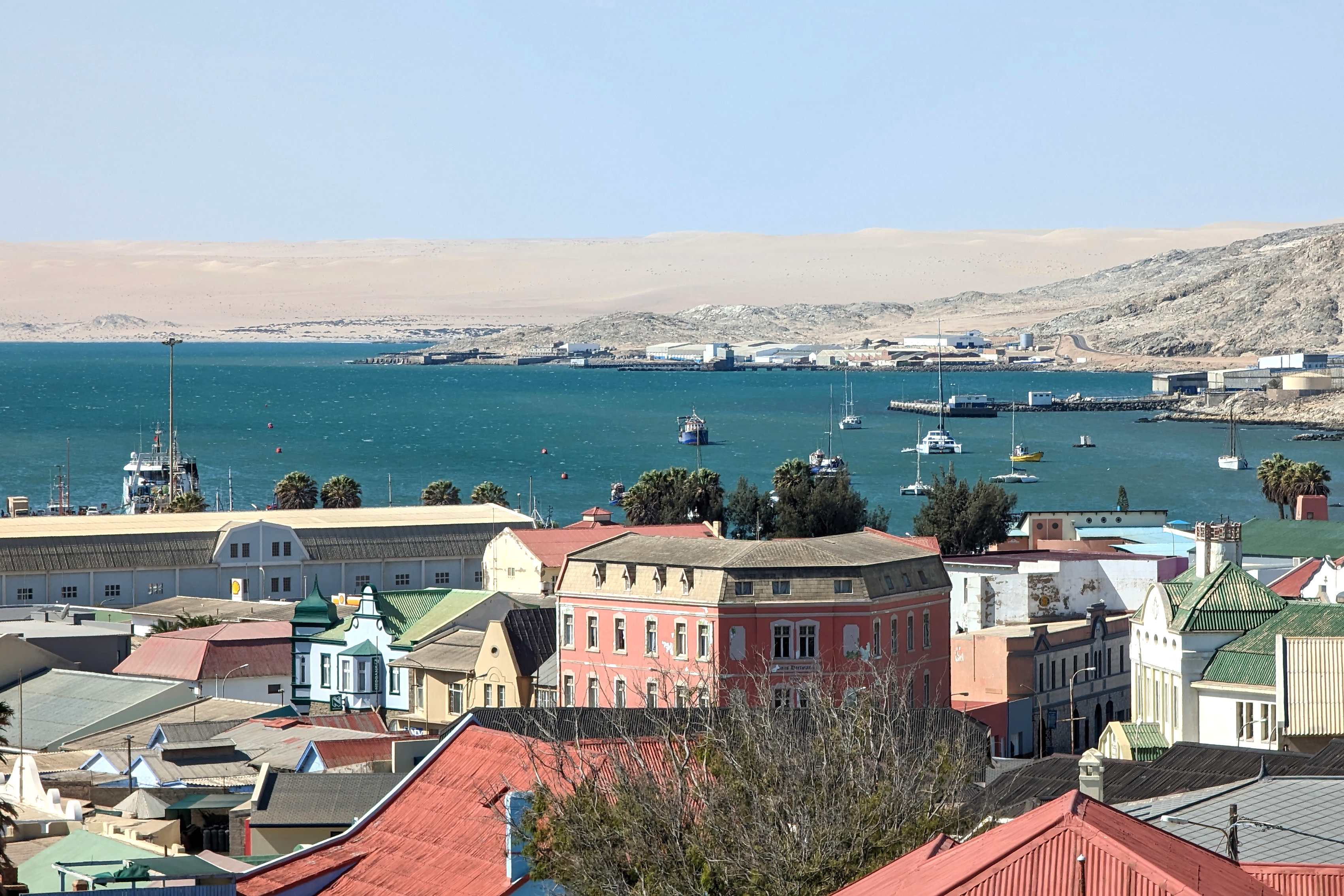 Today you will have time to get to know Lüderitz and its surroundings. On the way there, you will have already noticed how remote Lüderitz is on the Atlantic coast. The small town with its approximately 16,000 inhabitants is completely surrounded by barren desert and high sand dunes. This, combined with its historical flair, makes Lüderitz a very special place. Despite its remoteness in southwestern Namibia, Lüderitz has one decisive advantage – the town is located on a large bay, “Lüderitz Bay”, which is protected to the west by the Lüderitz Peninsula. The coastal town of Swakopmund, located more in the center of the country, does not have such a bay, so Lüderitz has been of strategic importance as a port from the very beginning. German tobacco merchant Adolf Lüderitz recognized the advantage of the bay and founded the town named after him there on May 12, 1883. He bought the surrounding land with the intention of finding mineral resources and establishing a trading post. Alfred Lüderitz immediately approached the German government with a request to protect the acquired land against possible claims by the British, who were not far away in South Africa. On April 24, 1884, Bismarck informed the German consul in Cape Town that the land acquired around Lüderitz was under the protection of the German Empire. This marked the founding of the colony of German South West Africa, which existed until it was ceded to the British-administered Union of South Africa in 1915. From 1915 to 1919, present-day Namibia was under the military administration of the Union of South Africa. From 1919 until independence on March 21, 1990, South West Africa (abbreviated S.W.A.) was administered by South Africa. The historical flair of Lüderitz can be explored on a city tour. Less than 500 meters from the Nest Hotel is the city's landmark, the Felsenkirche (Rock Church), built in 1912. The church's name comes from the rocky ground on which it stands. Below the church is the Goerke House, built in 1910 by a wealthy diamond dealer. On a tour of the city, you will see many colorful half-timbered houses and Art Nouveau buildings that give the impression that time has stood still. During our city tour, there is also the opportunity to visit the Namibia Maritime Museum or the Lüderitzbucht Museum. After our city tour, we will take a trip to the Lüderitz Peninsula. The “Grosse Bucht” (Great Bay) in the far south is very windy and popular with anglers. Here you can see giant kelp floating on the beach and in the water, which is typical of the cold Benguela Current. This brown algae can have a size up to over 40 meters high. The strong winds on the coast gave rise to the Lüderitz Speed Challenge on the peninsula in 2007. This is a surfing competition in which many world speed records have been set. The surfers reach speeds of well over 100 km/h. On our tour, we will stop at one or two bays along the way. The tour ends with a visit to Diaz Point, where there is a lighthouse and the Diaz Cross. This cross is a replica from 1929. The original cross was erected there in 1487 by the Portuguese navigator Bartolomeu Diaz. He was the first European to arrive on the peninsula while searching for the sea route to India. After the round trip across the peninsula, we drive back to the Nest Hotel. In the evening, we can walk to the waterfront and enjoy excellent fish and other seafood at the Essenzeit restaurant. The restaurant has an elevated outdoor area with a beautiful view of the harbor.