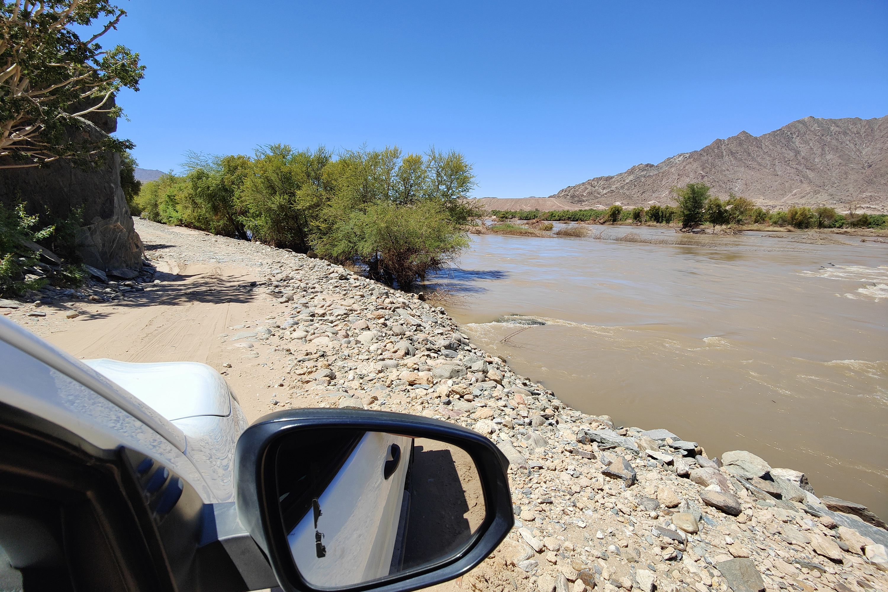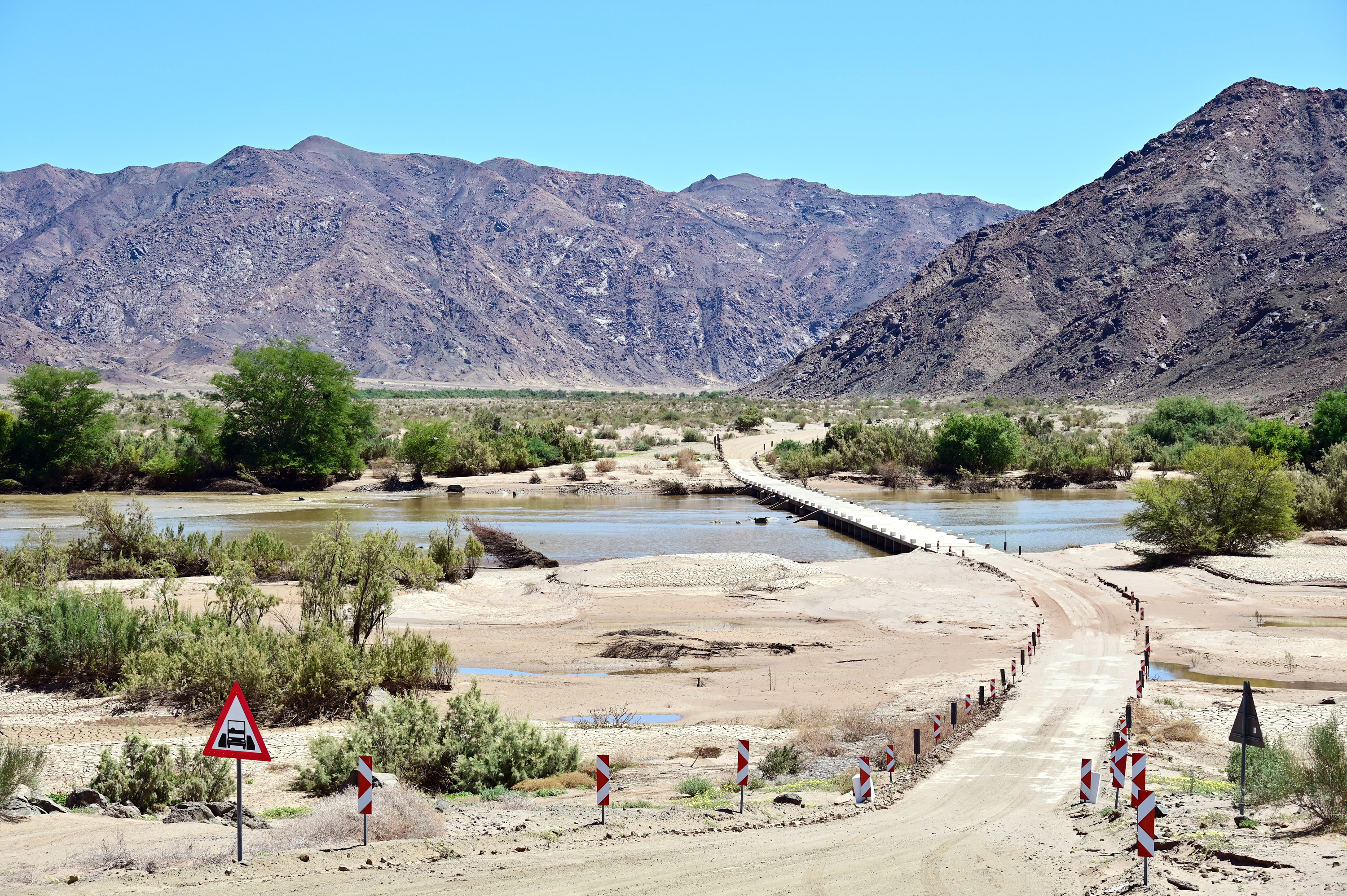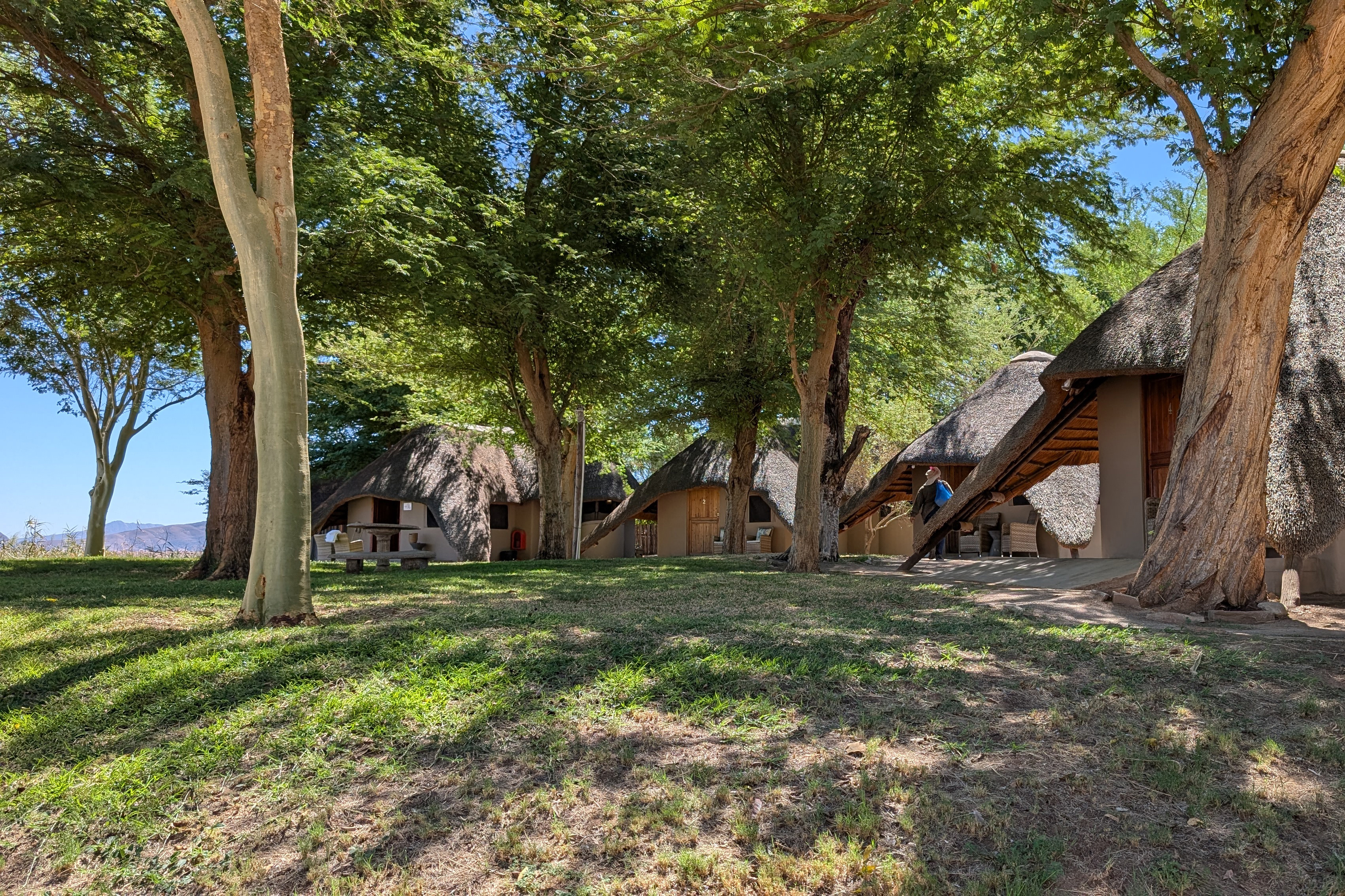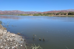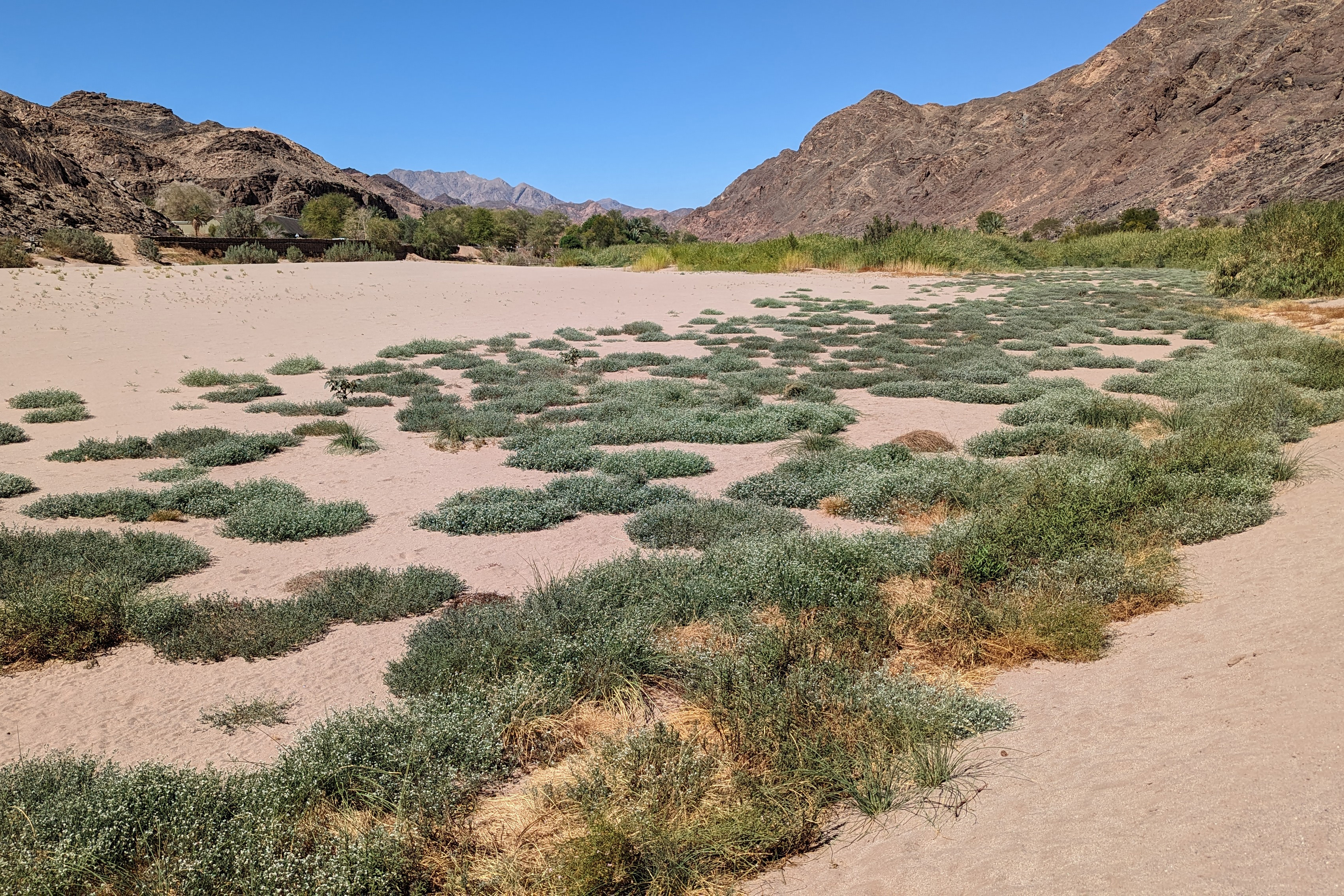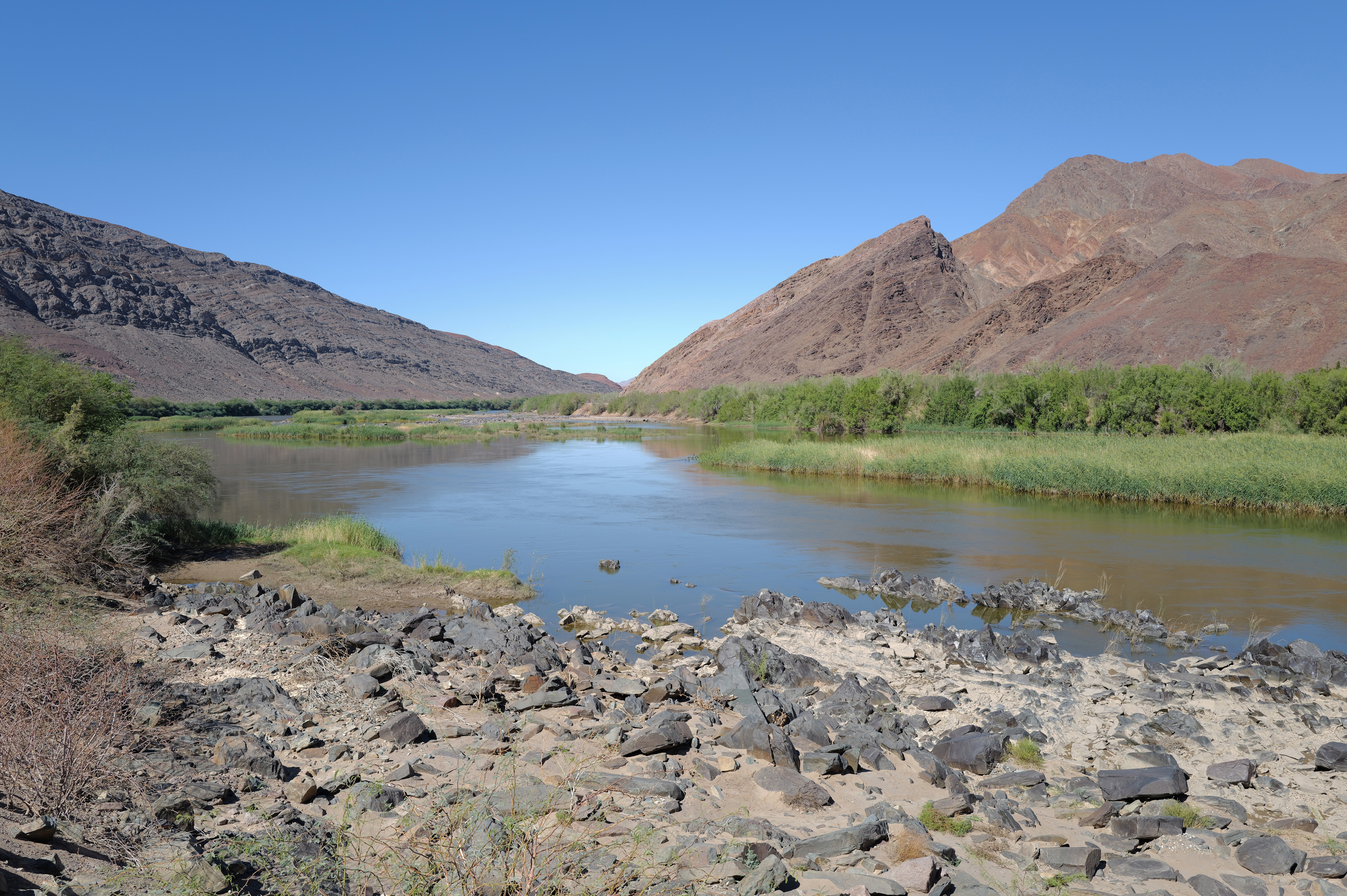 In the morning, we will say goodbye to Canyon Lodge and continue on to the southernmost point of our journey – the Orange River, known as Gariep in Afrikaans. This leg of the journey is very short, at around 130 km, so it will be a particularly relaxed day. We will drive through the landscape dotted with euphorbias and see the foothills of the canyon on the right. Afterwards, we can make a short detour to the hot springs of Ais-Ais. There you can see the foothills of the ever-shrinking Fish River Canyon even better. Then, we will drive to the village of Aussenkehr, which is located directly on the Orange River. The Orange River is one of the few permanently flowing rivers in Namibia and therefore worth a visit. The next permanently flowing river, the Kavango, is located almost 1,200 kilometers away on the border with Angola. In between, there are only dry rivers in Namibia that flow only during the rainy season. The Orange River is home to an interesting bird population, but no crocodiles. These reptiles are only found in rivers on Namibia's northern borders. It can get very hot in the Orange River valley, and the generally dry climate means that there is very little vegetation in the surrounding mountains. This makes the green belt around the Orange River all the more impressive. In Aussenkehr, grapes are grown on large plantations, as the Orange River provides a steady supply of water for the vines. The contrast between the green plants and the rocky surroundings is very impressive. We will spend the night at the Norotshama River Resort, right on the Orange River. There you can relax and, if you want, even swim in the Orange River. It is also a great place to observe the bird life along the riverbank. In the evening, you can sit on the terrace above the river and look across to the other side of the river in South Africa.