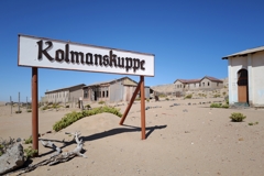 After two days of cooling off on the coast, we now head back inland. Another highlight of our tour follows, as in the morning we will visit the famous diamond ghost town of Kolmanskuppe, which is only 10 kilometers away from Lüderitz as the crow flies. The small town owes its existence to August Stauch, who was born in Ettenhausen, Thuringia. During the days of the narrow-gauge railway to Seeheim, strong southwesterly winds caused constant drifting of sand on the railway line just outside Lüderitz. Even 100 years later, this railway line is still affected by sand drifts, which meant that it was out of service for many years. Around 1908, August Stauch was tasked with keeping the tracks at Grasplatz station clear. He instructed his worker Zacharias Lewala to look out for special stones when clearing away the sand. On April 10, 1908, Zacharias Lewala came to August Stauch and presented him with several sparkling stones. Stauch had the stones examined, and they turned out to be rough diamonds. Stauch then secured a claim, and his diamond finds made him extremely wealthy. After word of Stauch's finds spread like wildfire, a major diamond boom ensued, leading to the declaration of the restricted area, the Sperrgebiet, and the emergence of Kolmanskuppe. The name Kolmanskuppe or Kolmanskop goes back to the Nama Johnny Coleman, who got stuck there with an ox cart in 1905 but was rescued. The restricted area stretches from Kolmanskuppe about 250 kilometers south to Oranjemund. The diamond boom quickly made Kolmanskuppe the richest town in Africa, but by 1930, diamond mining had completely ceased because new fields further south were being exploited. At its peak, up to 400 people lived in Kolmanskuppe, indulging in every luxury. There was a theater, a bowling alley, a swimming pool, a modern hospital with X-ray equipment, an ice factory, shops, bars, and much more. All these buildings can still be seen today. However, they have been falling into disrepair and silting up since 1930, when the inhabitants left the town. Infrastructure such as the bowling alley and gymnastics equipment was simply left behind and surrendered to the desert. In the entrance area of Kolmanskuppe, however, there are many museum-like rooms that have been preserved and are not covered in sand. Here, you can get a good sense of what life was like during the diamond boom. In all the other buildings, however, the desert is reclaiming the masonry. When visiting Kolmanskuppe, you can wander around freely and enter all the buildings at your leisure. It is a true paradise for photography. However, you should be careful, as some of the ceilings and floors in this “lost place” are no longer stable. At the end of the tour, we can have a snack in the bistro. Souvenirs can also be purchased there. In a separate room, you can also buy beautiful diamonds with certificates. After Kolmanskuppe, we will drive towards Aus, where we will spend the night in a beautiful lodge in Klein-Aus-Vista. In the afternoon, you can go hiking in the gorgeous granite mountains or go on a mountain bike tour. In the evening, you can sit on the balcony of the restaurant and watch the sunset while enjoying excellent à la carte food.