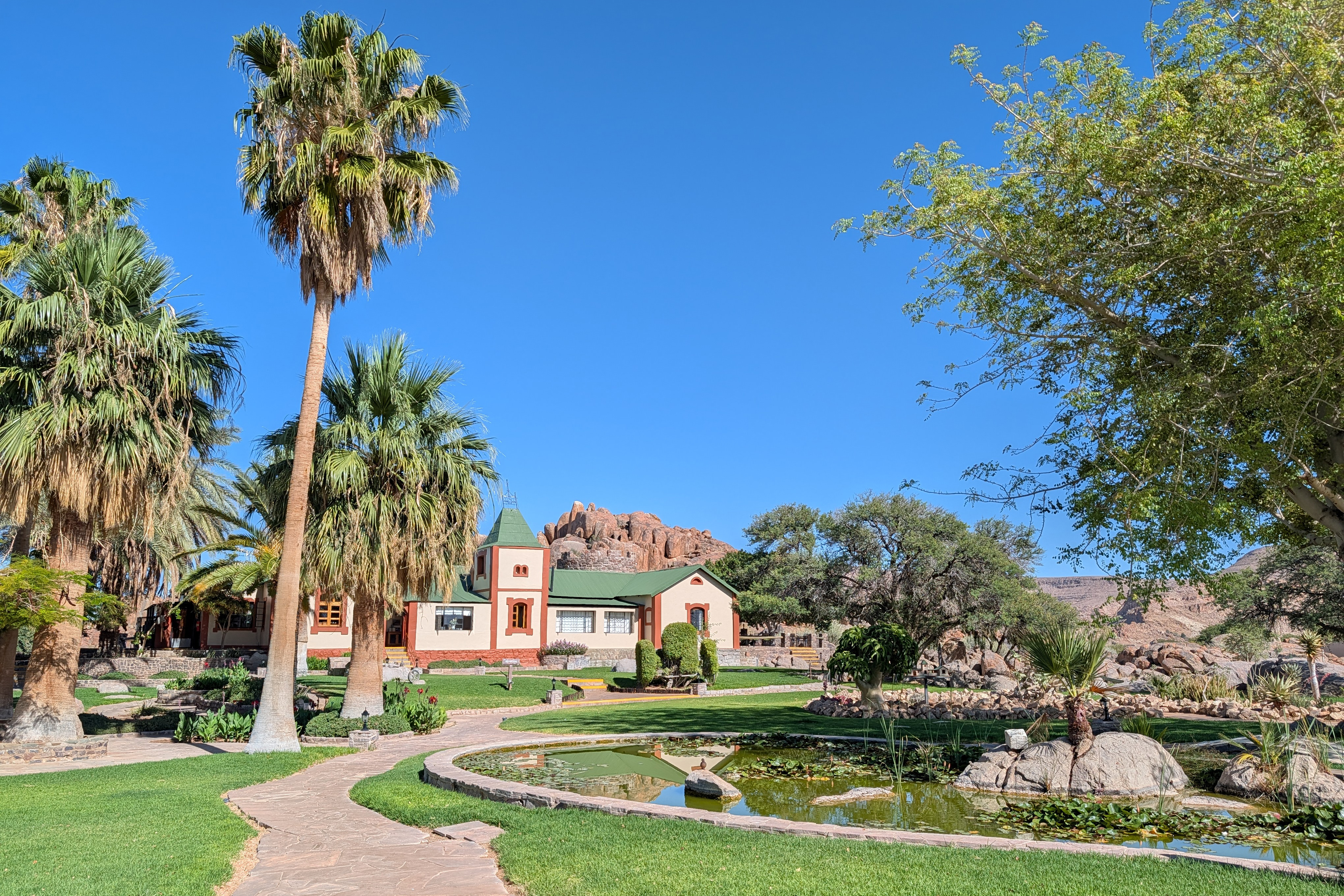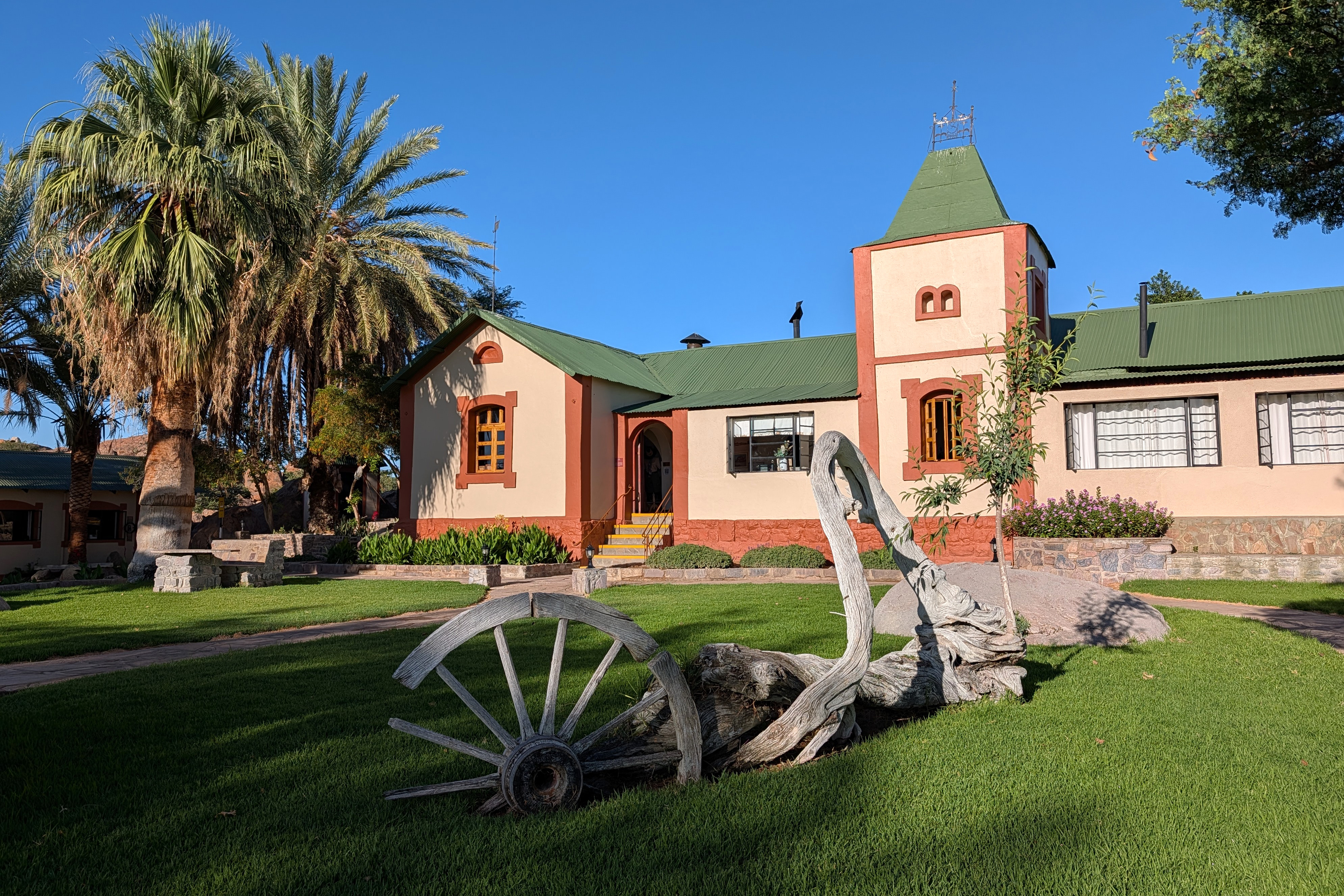 After a leisurely breakfast, we continue deep into the south of Namibia. We will first drive on the B1 asphalt road to the quiver tree forest just before Keetmanshoop. On the left-hand side of the route, you can see the Namibian railway, and on the right-hand side, you can spot the striking Brukkaros Mountain. This is a volcanic crater visible from afar, rising 600 m above the plain. Once you arrive at the quiver tree forest, you can take a short walk through this considerable cluster of trees typical of the country. In Latin, this species is called Aloe dichotoma (recently Aloidendron dichotomum), which refers to the fact that each branch divides into two further branches. The Bushmen of the San people used to use the branches as quivers for their arrows. After this break, we drive through the tranquil town of Keetmanshoop, which was named in 1866 after the German merchant Johann Keetman. However, he never visited the town himself. He merely provided financial support for a mission station there. We continue to the Naute Dam, which is the third largest dam in Namibia. Only the Neckertal and Hardap dams are larger. Birds can be observed at the reservoir, and below it there is a large date plantation, including a distillery where local gin is produced. We now continue south and pass the Holoog railway bridge. It is located on the old railway line built around 1908 from Lüderitz via Seeheim to Karasburg. Next to the bridge are two very old graves from the German colonial era. The horse rider Lichte and private Lietz of the German Schutztruppe are buried there. Another monument to the colonial era is located on the other side of the gravel road. Here stands an old lime kiln, which was also built around 1908 for the production of quicklime. The quicklime was mixed with sand and water to make cement, which is said to have been very resistant to termites. These old lime kilns can be found in many places in Namibia. Another one is located at Simplon on the railway line on the way to Aus, after which the “Alte Kalköfen Lodge” is named. Natural limestone and its use in the production of quicklime has been important for Namibia in the past, as evidenced by place names such as Kalkrand, Kalkfontein (today's Karasburg) and Kalkfeld. At the end of today's journey, we arrive at Canyon Lodge, which offers plenty of greenery and relaxation. The lodge consists of many individual houses that are integrated into the rocky landscape. Other houses stand alone in front of a green meadow. The lodge is ideal for staying and relaxing for two days.